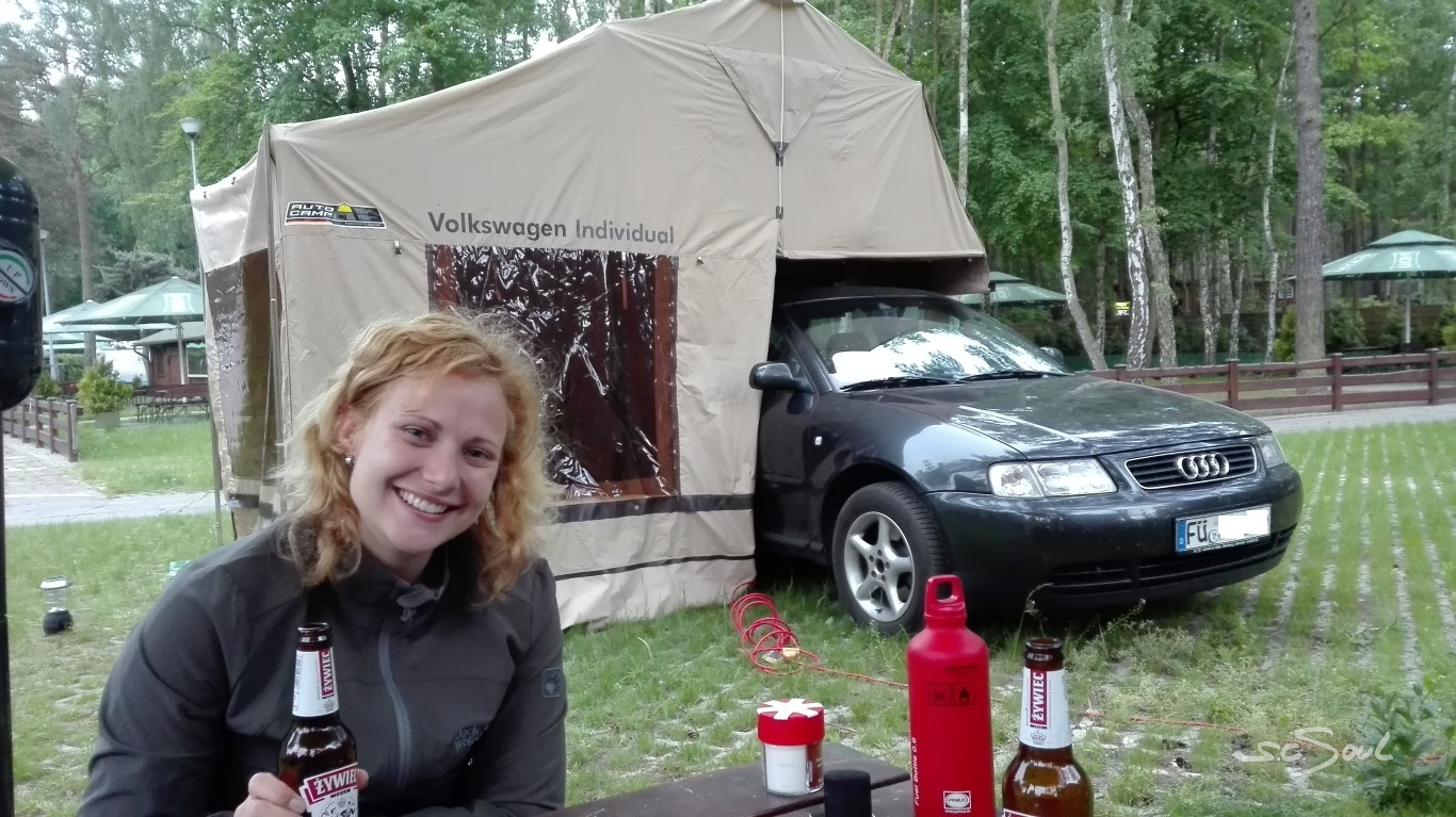 Als wir endlich auf dem Campingplatz in der Nähe von Danzig, und 200m vom Ostseestrand entfernt angekommen sind, ging es ans Aufbauen des Dachzeltes und trotz sehr geringer Erfahrung ging das Ganze recht schnell vonstatten – das nächste Mal gibt’s vielleicht sogar ein Zeitraffer-Video davon😉.