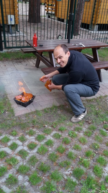 Anschließend ein bißchen Brennholz gesammelt und den Klappgrill in Betrieb genommen. Zugegebenermaßen … ohne ein bisschen Nachhilfe per Brennspiritus hätten wir es wahrscheinlich nicht geschafft und die Streaks waren aufgrund der geringen Hitzewirkung des Holzes mehr ‚gesmoked‘ als gegrillt, aber trotzdem seeeehr lecker!
