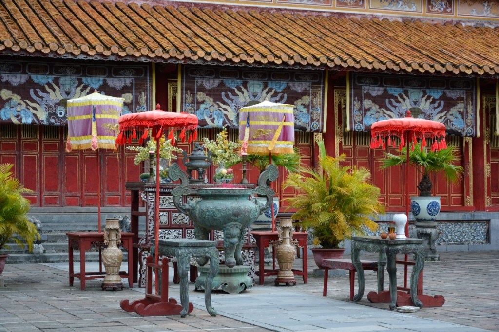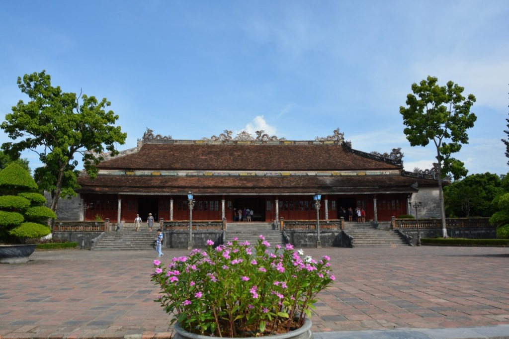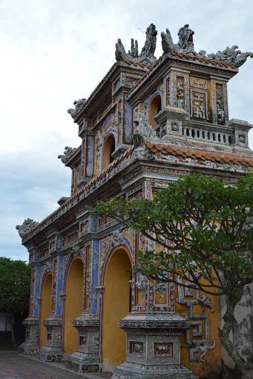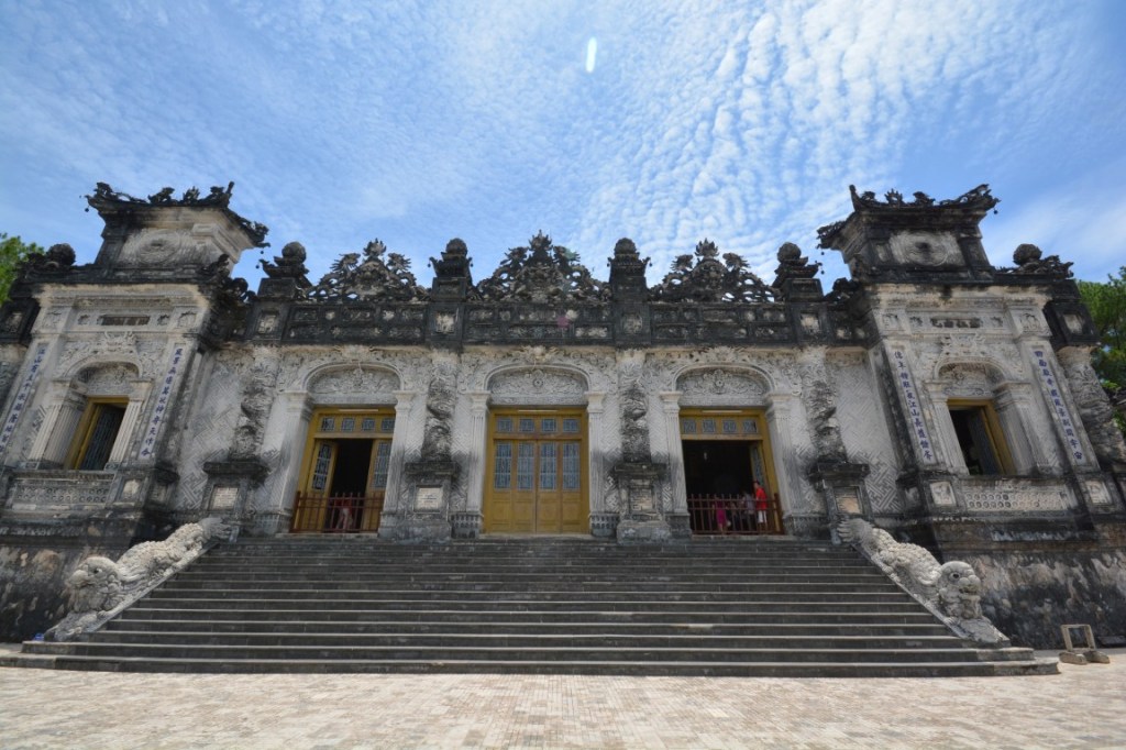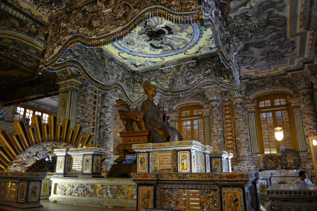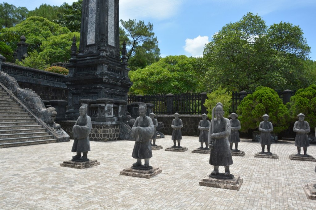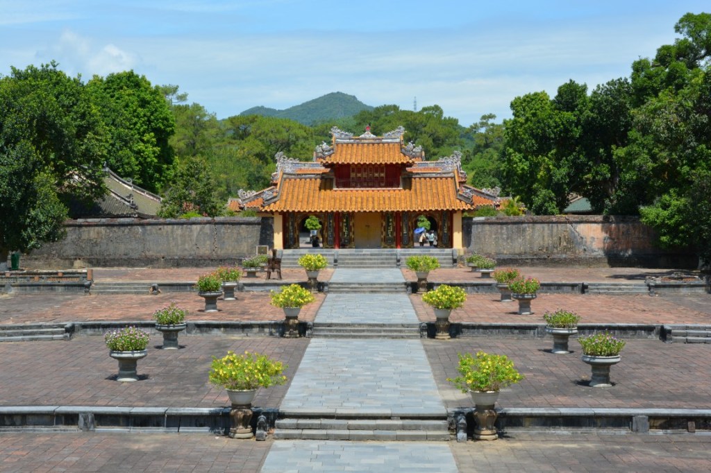 Unser erster Stopp nach der romantischen Nachtzugfahrt aus Hanoi ist Hue, ein richtig schönes Städtchen mit schöner Zitadelle, Königs-Gräbern, Pagoden, und natürlich einer Bootsfahrt auf dem Parfümfluss. Speziell in Hue hatte ich das Gefühl einer kleinen Auszeit vom Trubel Hanois. Die Straßen sind aufgeräumter und sauberer; die Restaurants ebenso, und auf den Gehsteigen kann man hier fast schon störungsfrei laufen – Ich fand’s für 1,5 Tage ganz angenehm. 😉