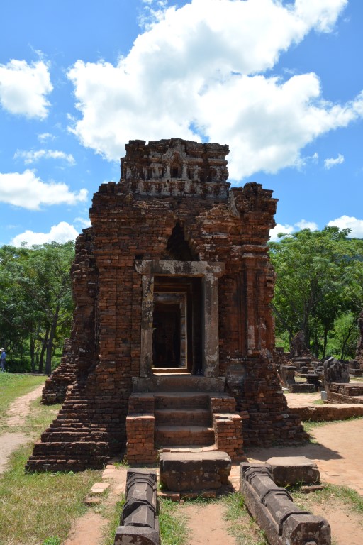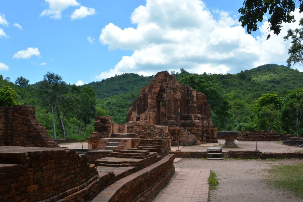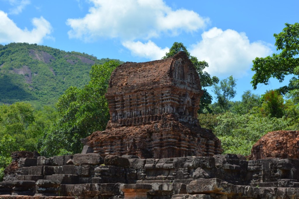 Die Bauten/Tempel des Unesco-Weltkulturerbes bzw. deren Bauweise ist vergleichbar mit Angkor Wat in Kambodscha. Spannenderweise hat man immer noch keine Ahnung wie es die Cham-Kultur vor ~1.700 Jahren geschafft hat, in fugenloser Bauweise die Steine so aufeinander zu setzen, dass sie stabil und so lange haltbar sind. Leider haben die ‚westlichen Mächte‘ in My Son böse gewütet: Die Franzosen haben nach der Entdeckung von My Son fast alle Köpfe der Statuen nach Frankreich in den Louvre „exportiert“ (keine Ahnung, warum nur die Köpfe und nicht die ganzen Statuen); noch schlimmer waren die Auswirkunden des Vietnnam-Krieges der USA. Die Anlage fiel groß angelegten Bombenangriffen zum Opfer, da sich hier der Vietcong im Dschungel versteckte. Von den ehemals 70 Bauwerken sind leider nur 20 noch einigermaßen erhalten.