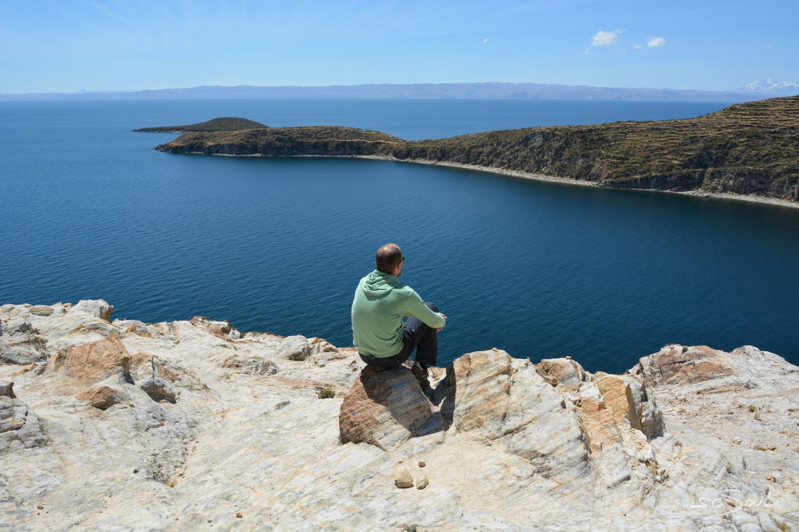 Es ist der Anlaufpunkt aller Touristen aus Peru, und Ausgangspunkt für Ausflüge auf die wunderschöne Isla del Sol im Titicacasee. Im Vergleich zu den Attraktionen in Peru fast noch ein „Geheimtipp“, ist die Insel eine kleine Perle im schimmernd blauen Wasser des Titicacasees. Keine Autos oder Motorräder gibt es hier; selbst Fahrräder sind aufgrund mangelnder Straßen rar gesäht. In gleißender Sonne ging es in einer 5h Wanderung über die Insel, die auch (wir befinden uns hier wieder auf 4.000m Höhe) nicht so ganz ohne war. Das Panorama entschädigt uns, genauso wie die sogenannten Anden-Hühner, welche sich geniale Flugshows über unseren Köpfen lieferten.
