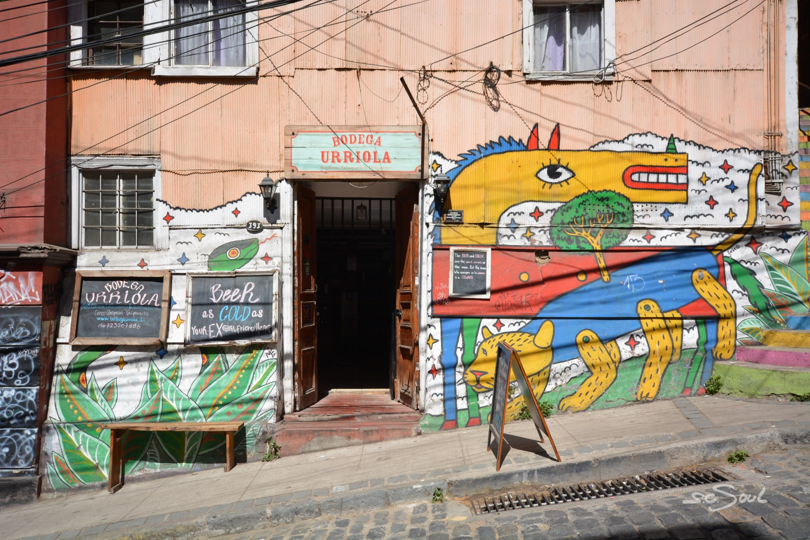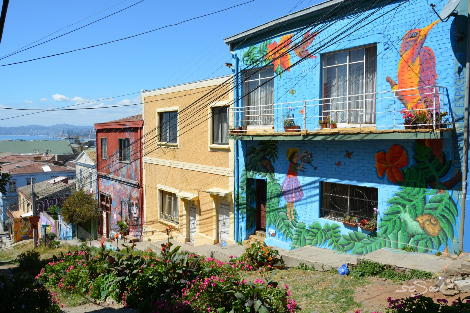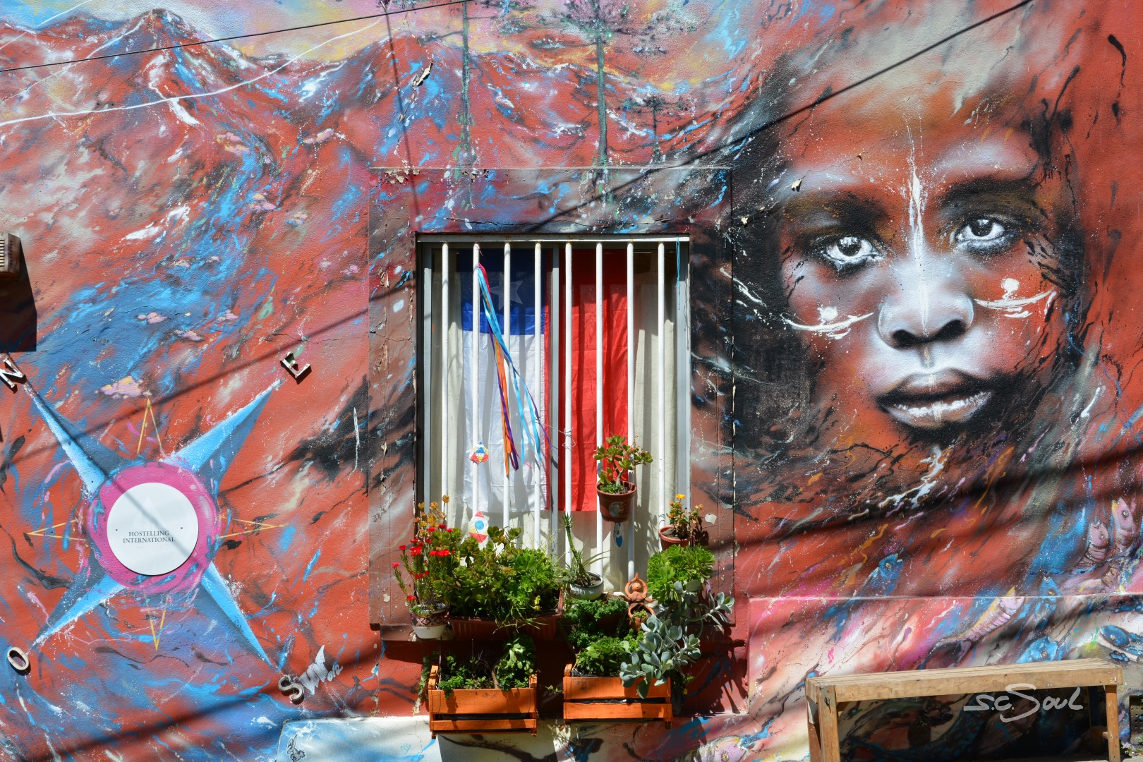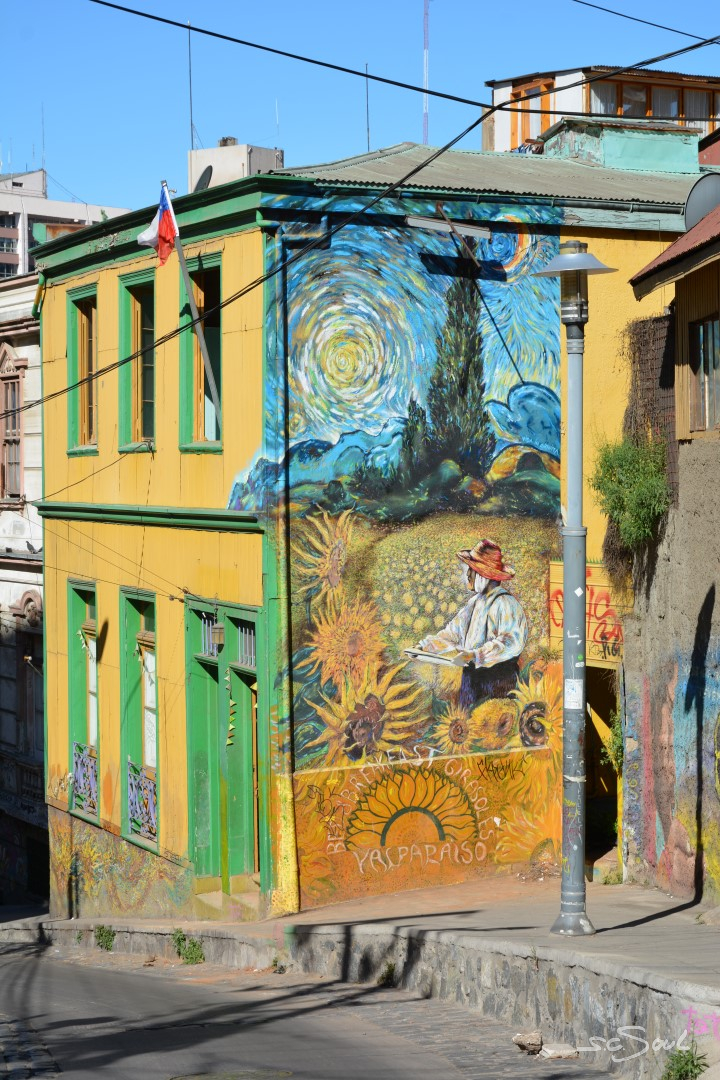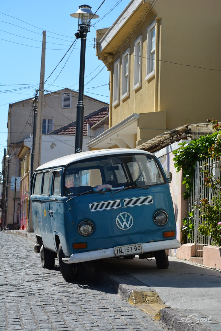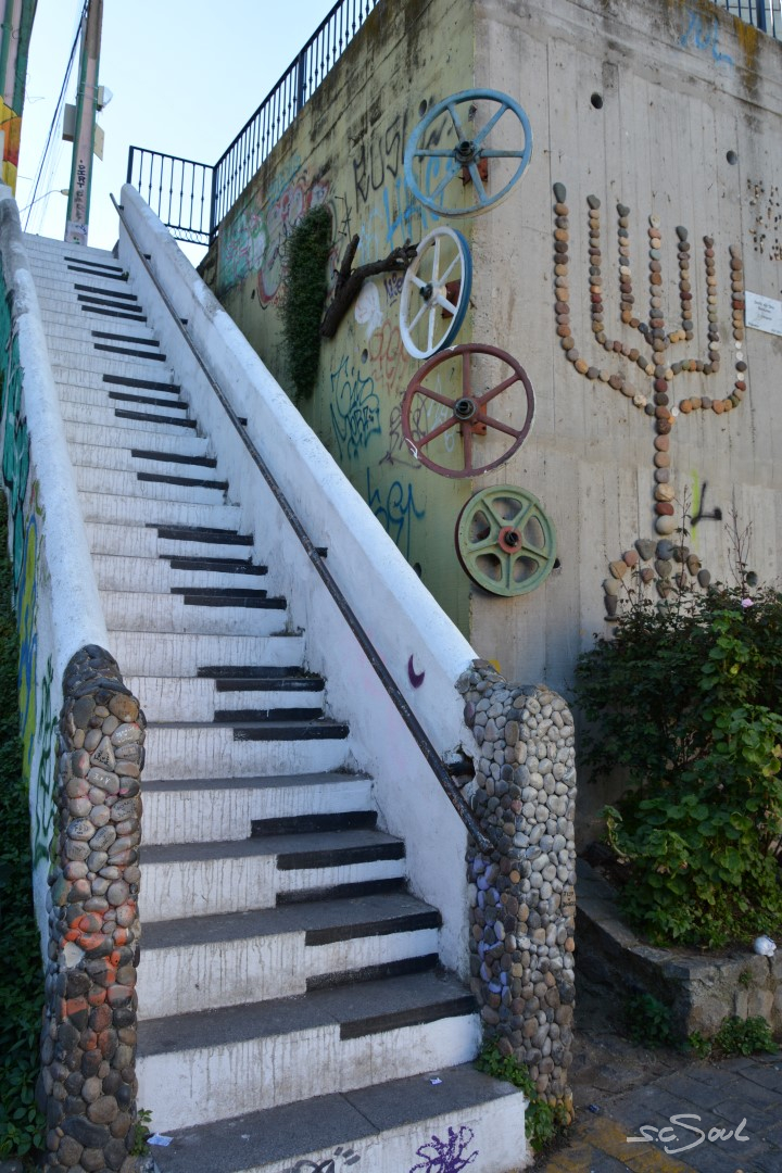 Valparaiso ist wunderschön – einziger Wermutstropfen – die Straßen sind voll mit den Hinterlassenschaften streunender Hunde. Die Häuser sind wundervoll bunt und liebevoll bemalt, aber wie Peter Foxx, auch bekannt als einer der Sänger von Seed in seinem Lied „schwarz zu blau“ über Berlin singt, so fühlte ich mich in dieser Stadt an dieses Lied mit folgender Textzeile erinnert: „Überall liegt Sch***, man müsst eigentlich fliegen – jeder hat nen Hund aber keinen zum Reden.“ Diese Tatsache ist wirklich schade, denn diese Stadt, idyllisch am Meer gelegen, mit ihren vielen Hügeln ist eigentlich wunderschön. Aber Gassi geht hier keiner; die Hunde werden (sofern es Besitzer gibt) einfach auf die Straßen gelassen. Leider wimmelt es in der Stadt von Obdachlosen, Hängengebliebenen, Abhängigen, die sich gegen Abend auf den unzähligen Treppen versammeln und die Stadt gegen Abend zu einem der unsichersten Orte Chiles machen. Vor keinem Ort wurden wir von so vielen Menschen eindringlich gewarnt: Taxifahrer, Inhaber von Hostels, … und selbst von zahlreichen Einwohnern Valparaisos selbst. Trotz allem haben wir uns auf das Positive konzentriert, und ich muss doch feststellen, dass ich mich (zumindest fotografisch) auf das Schöne konzentriert habe. Also keine Angst, es gibt keine künstlerischen Hundehaufen Bilder 😅.