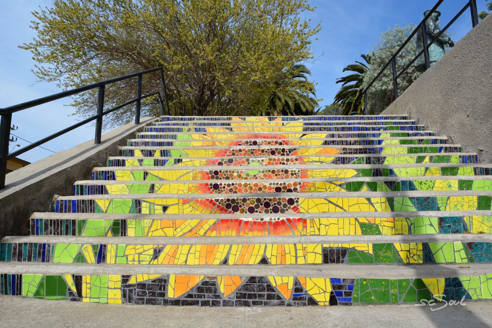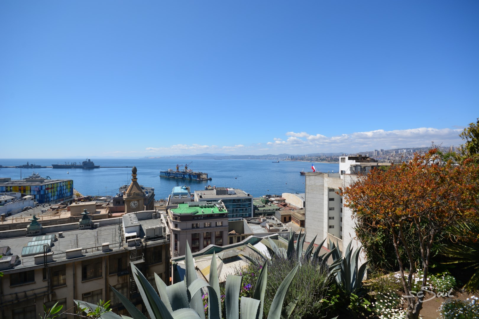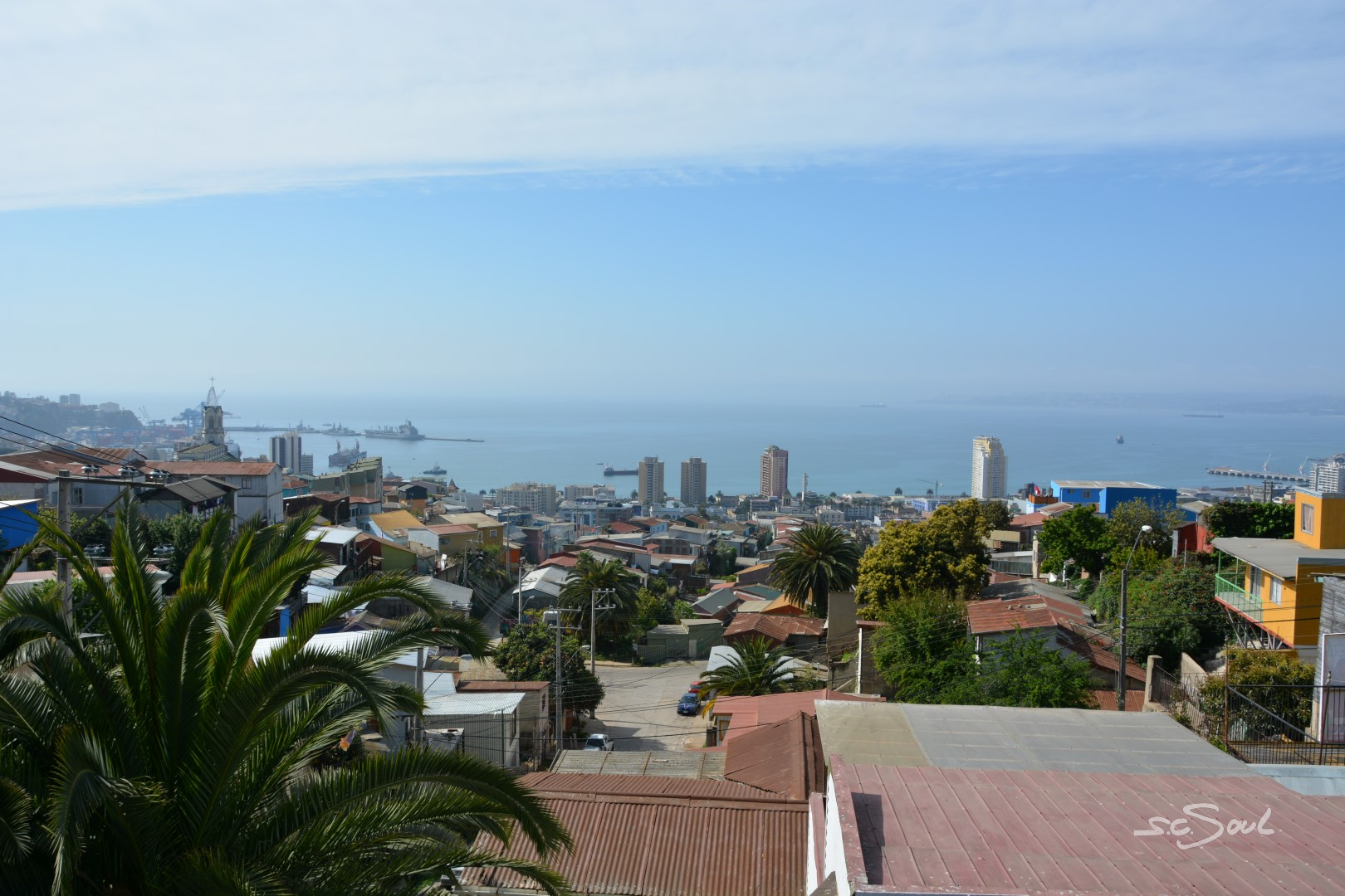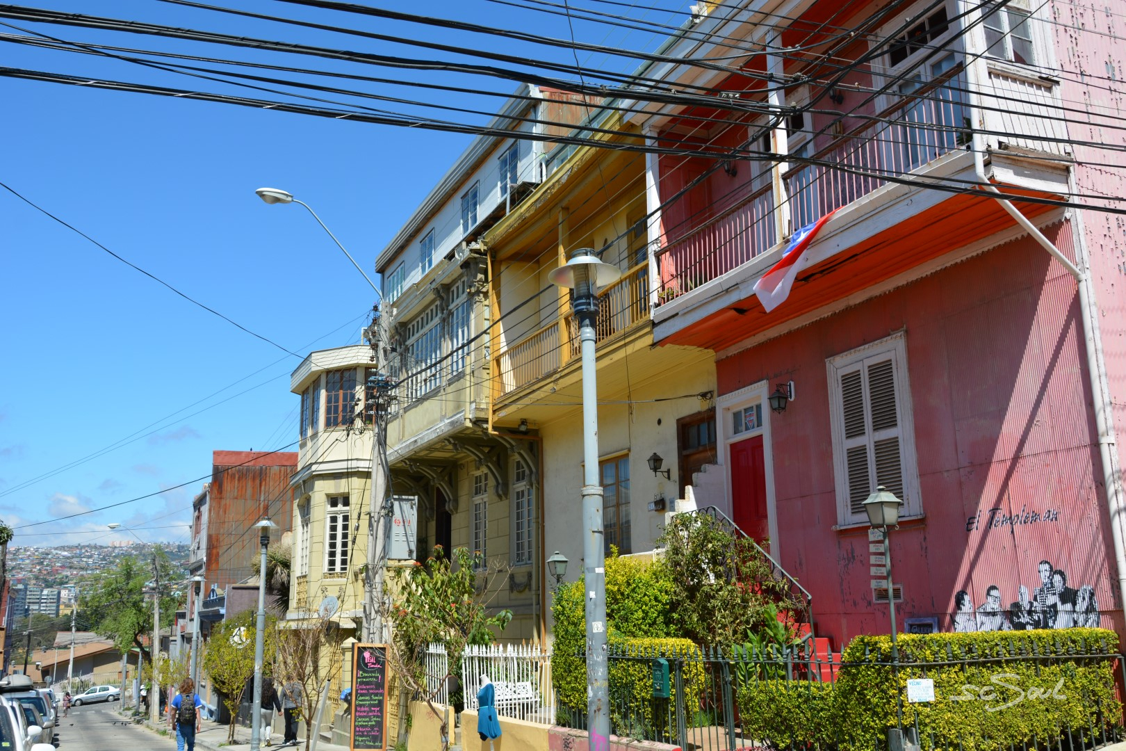 Valparaiso ist wunderschön – einziger Wermutstropfen – die Straßen sind voll mit den Hinterlassenschaften streunender Hunde. Die Häuser sind wundervoll bunt und liebevoll bemalt, aber wie Peter Foxx, auch bekannt als einer der Sänger von Seed in seinem Lied „schwarz zu blau“ über Berlin singt, so fühlte ich mich in dieser Stadt an dieses Lied mit folgender Textzeile erinnert: „Überall liegt Sch***, man müsst eigentlich fliegen – jeder hat nen Hund aber keinen zum Reden.“ Diese Tatsache ist wirklich schade, denn diese Stadt, idyllisch am Meer gelegen, mit ihren vielen Hügeln ist eigentlich wunderschön. Aber Gassi geht hier keiner; die Hunde werden (sofern es Besitzer gibt) einfach auf die Straßen gelassen. Leider wimmelt es in der Stadt von Obdachlosen, Hängengebliebenen, Abhängigen, die sich gegen Abend auf den unzähligen Treppen versammeln und die Stadt gegen Abend zu einem der unsichersten Orte Chiles machen. Vor keinem Ort wurden wir von so vielen Menschen eindringlich gewarnt: Taxifahrer, Inhaber von Hostels, … und selbst von zahlreichen Einwohnern Valparaisos selbst. Trotz allem haben wir uns auf das Positive konzentriert, und ich muss doch feststellen, dass ich mich (zumindest fotografisch) auf das Schöne konzentriert habe. Also keine Angst, es gibt keine künstlerischen Hundehaufen Bilder 😅.