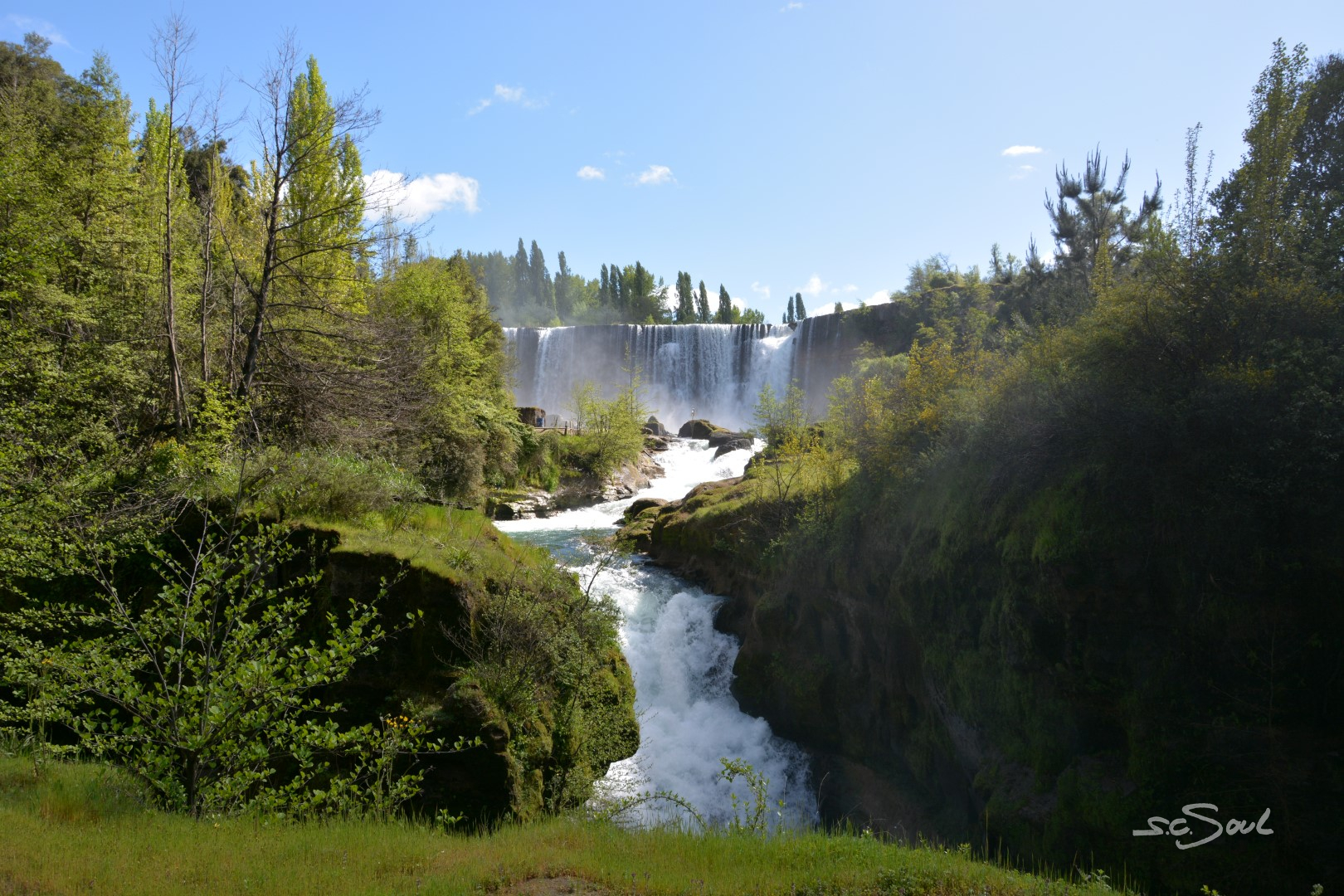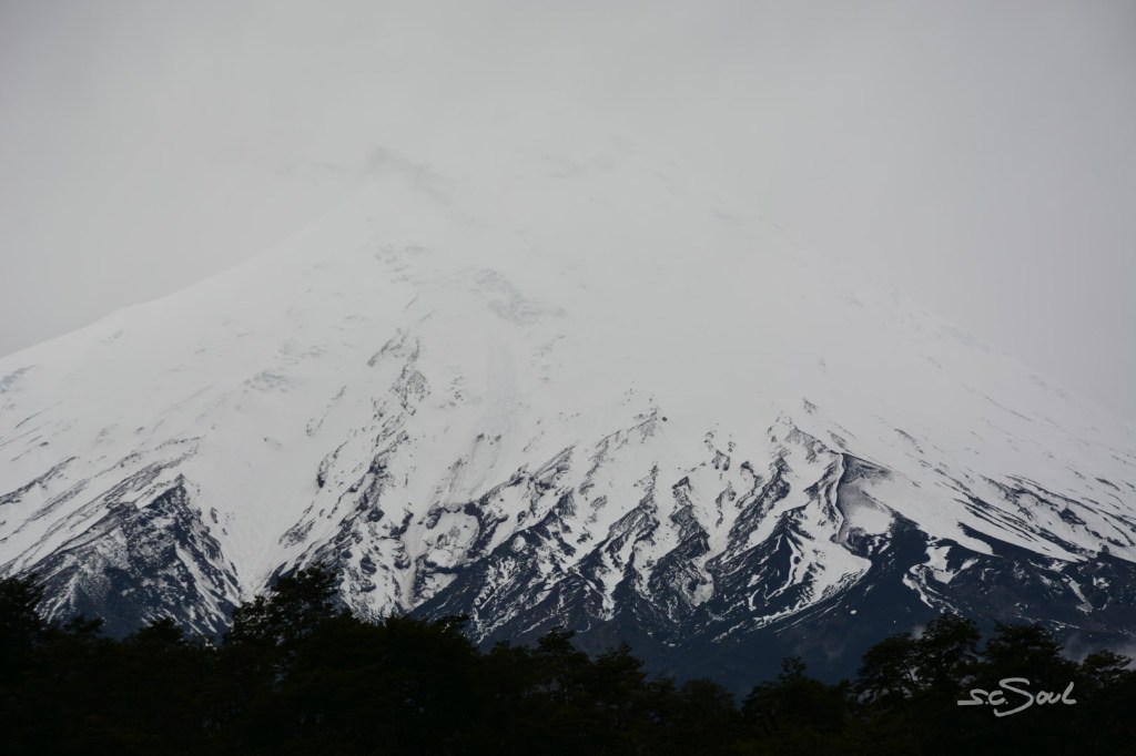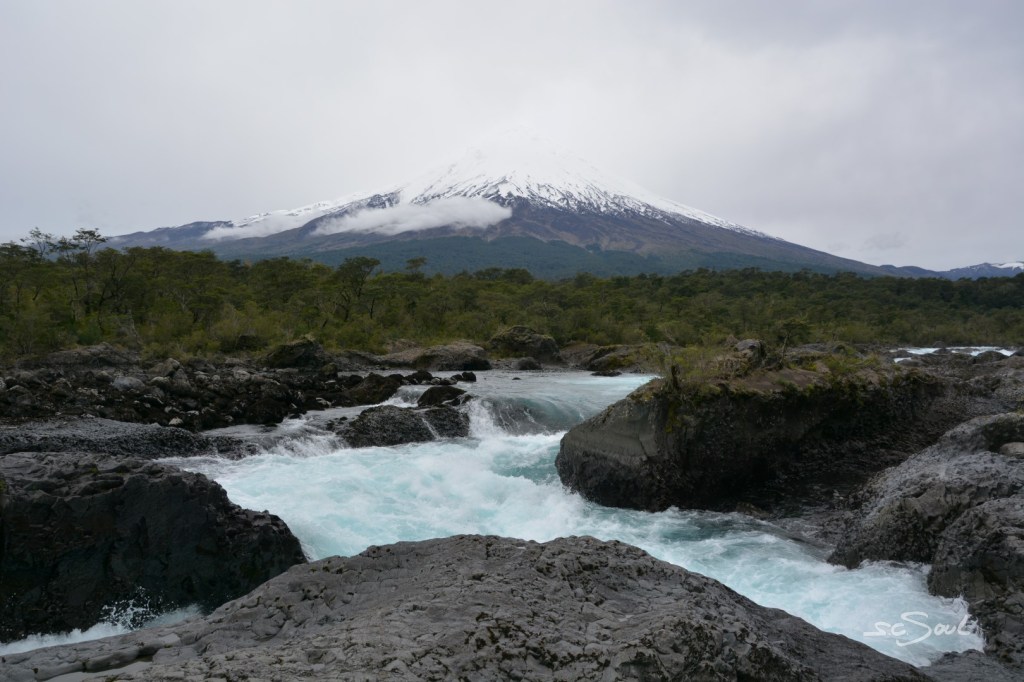 Weiter südwärts im Lake District, Richtung Puerto Varas, schlängelten wir uns vorbei an klaren Seen, Vulkanen und Wasserfällen (leider von Nebel begleitet).