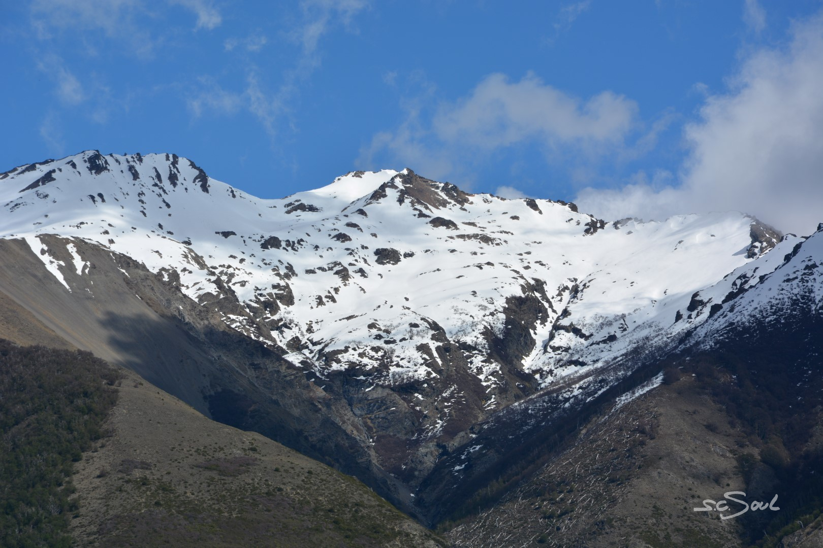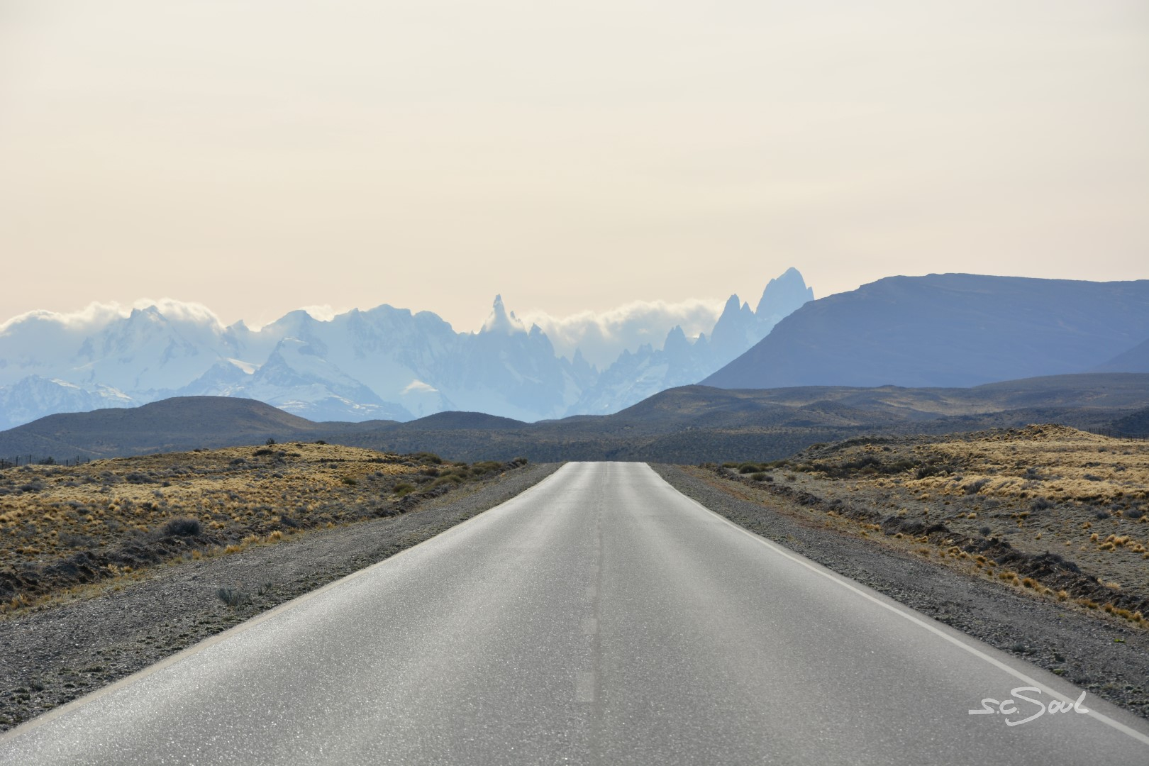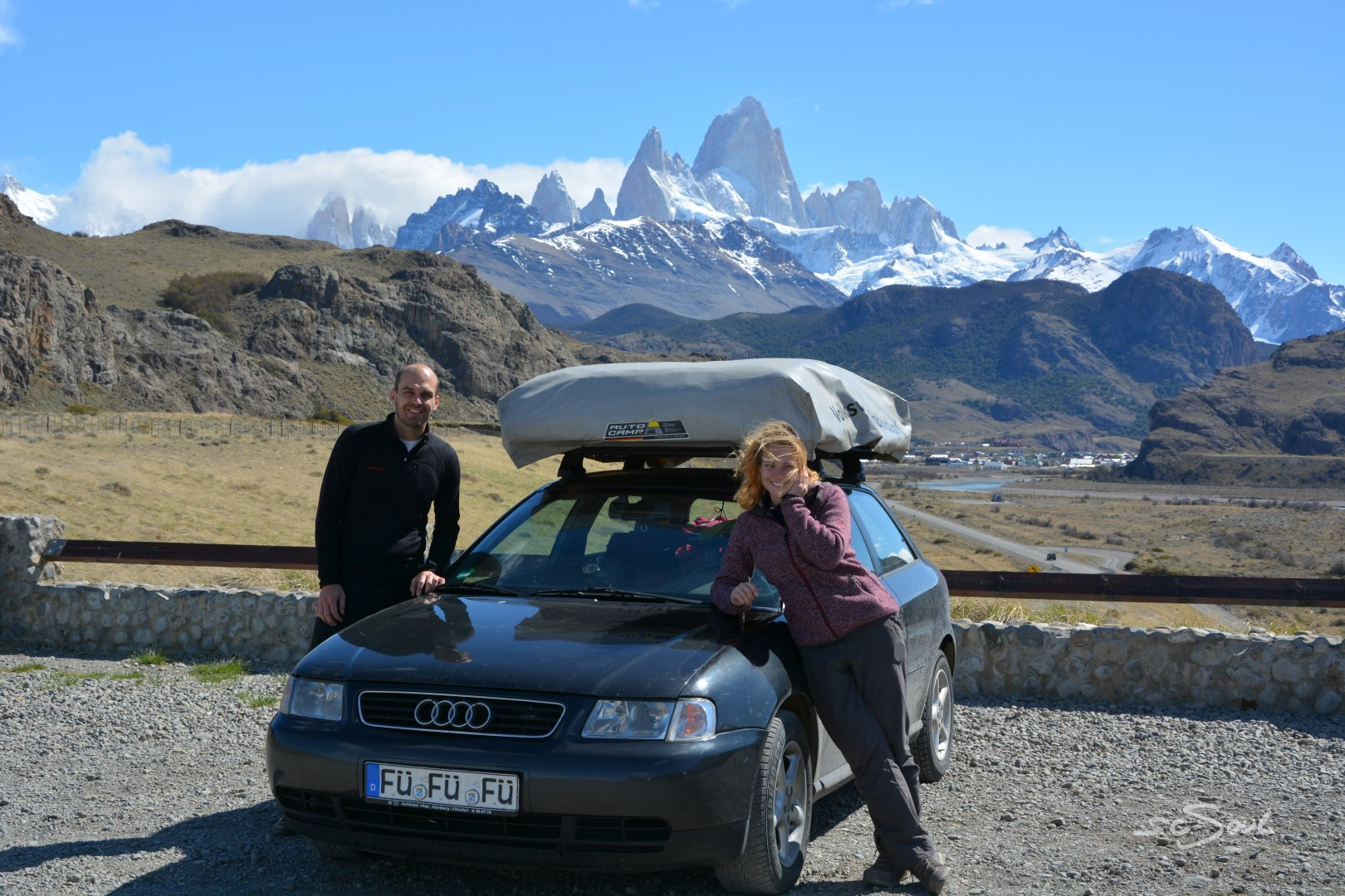 Von Bariloche (Argentinien) ging es nun nach El Chalten in Patagonien. Der berühmte Nordteil des Nationalparks Los Glaciares wartete mit dem imposanten Berg Fitz Roy, der bei Klettern auf der ganzen Welt wegen seiner massiven, vertikalen Granitwände bekannt ist, auf uns. Doch zuvor waren noch 1.300km auf der Ruta 40 im Westen Argentiniens an der Grenze zu Chile zurückzulegen. Erst ging es durch den argentinischen Teil des Seengebietes, und danach nichts als Himmel, Wüste und Straße. Viele fliegen diese Strecke, aber speziell die ersten 600km sind etwas ganz Besonderes.