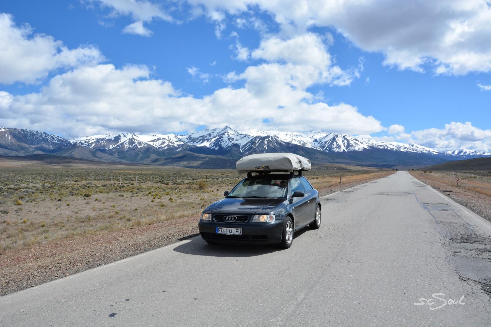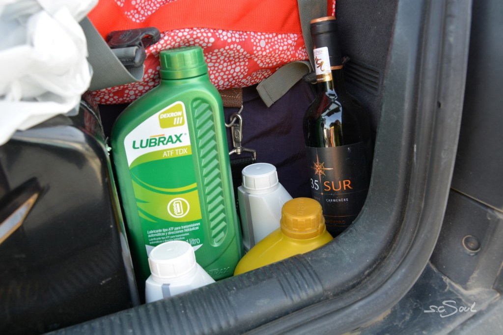 Den zusätzlichen Abenteuerfaktor bringt bei uns noch die durchaus realistische Gefahr liegen zu bleiben – denn mein A3 quietscht markerschütternd beim Lenken. Auf einer der wenigen Tankstellen dann ein Blick auf den Servoölstand: wir verlieren massiv. Ein Blick unters Auto zeigt unser Servolenkgetriebe an der Spurstange ist undicht. Kurze Recherche der möglichen Schäden und Optionen. Da hier unten die Chance auf Teile gleich Null ist, entscheiden wir uns für permanentes Nachkippen. – War auch der Vorschlag des hilfsbereiten Argentiniers auf dem Parkplatz der Tankstelle, der, wie sich entpuppte bei VW in Buenos Aires arbeitet (Zufälle gibt’s!), wenn wir nicht umdrehen wollen.