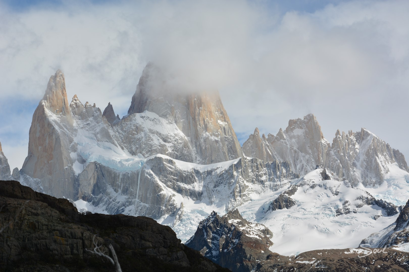 Mit einer Zwischenübernachtung in einem trostlosen Dorf namens Rio Mayo, erreichen wir El Chalten: Klein und überteuert (wie alles hier unten – selbst einfachste Einkäufe tun im Geldbeutel weh), aber wegen seiner Lage am Fuße des Fitz Roy ein einfach unschlagbarer Ausgangspunkt für Touren. Wir haben Glück mit dem Wetter und die Aussicht auf unserer Halbtageswanderung ist genial.