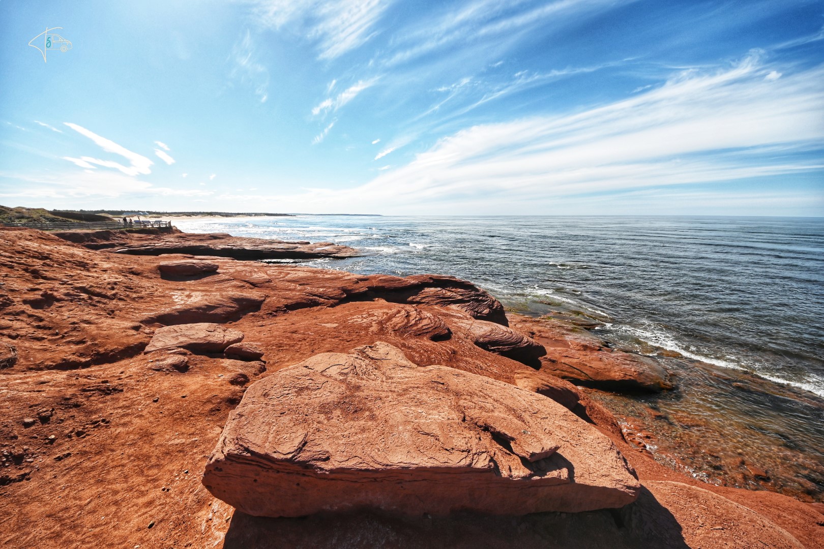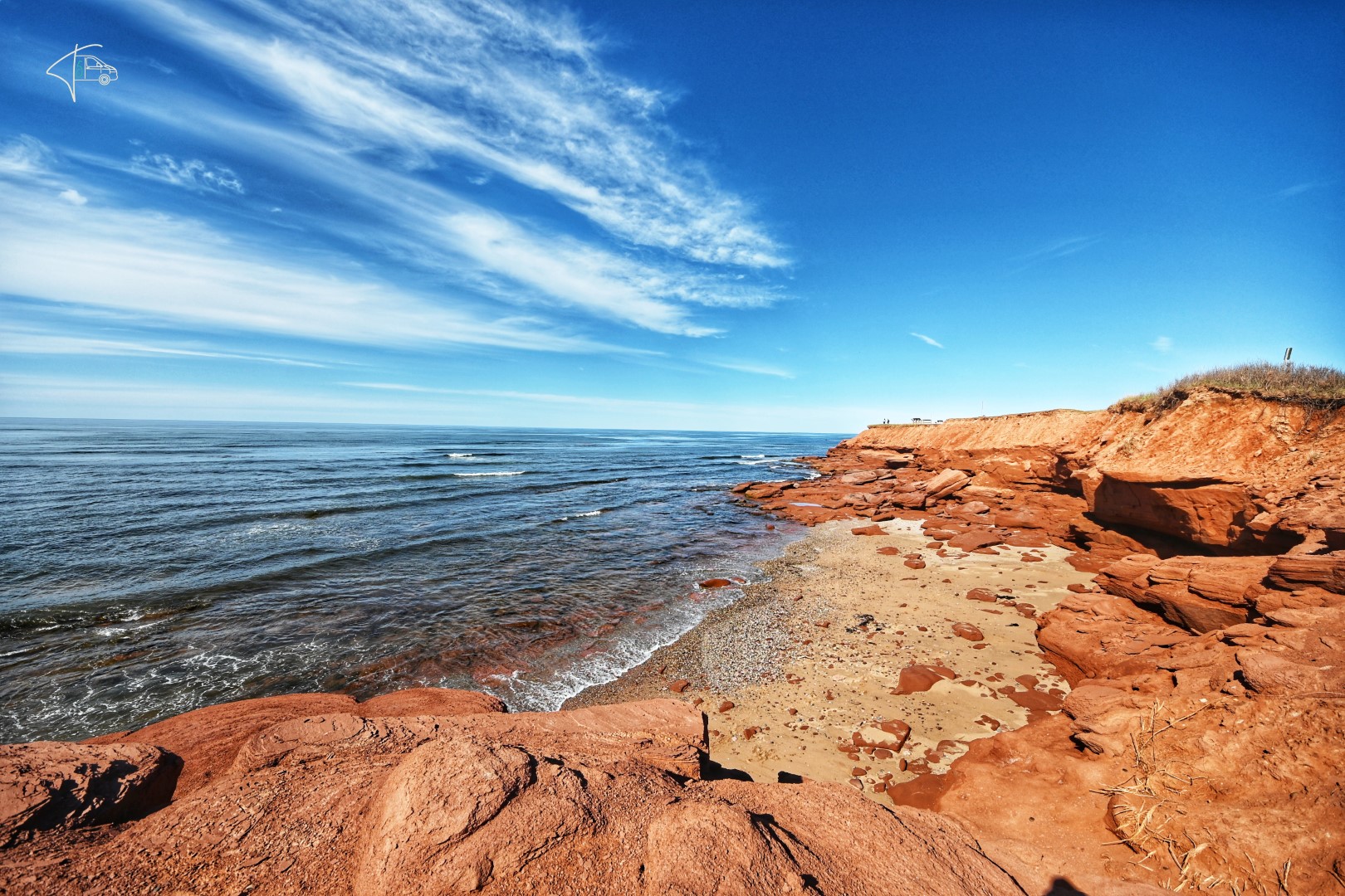 Nächster Halt war dann das Hauptareal des Parks die sogenannten „Cavendish Cliffs“. Diese sind vor allem wegen ihrer roten Farbe, die zusammen mit dem Dunkelblau des Meeres, grünem Gras und einem blauen Himmel tolle Farbkontraste bilden, bekannt.