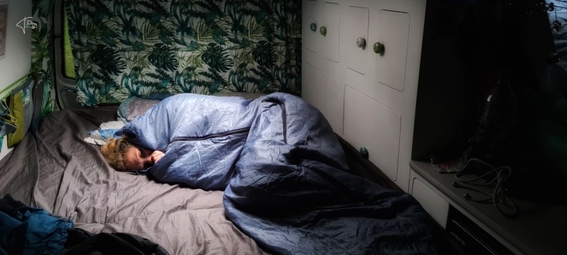 Größtes „Lowlight“ des Anfangs waren definitiv die Temperaturen (nachts anfangs nur 4°C) und der Regen. Wir waren sehr dankbar um die Standheizung – weniger darüber dass diese sich nur 1x pro Nacht programmieren lässt (Unterschied zwischen unserem Transporter und dem California-Ausbau). D.h. wenn man diese öfter betreiben will, muss jedes Mal Einer aus dem warmen Schlafsack kriechen und manuell anmachen.