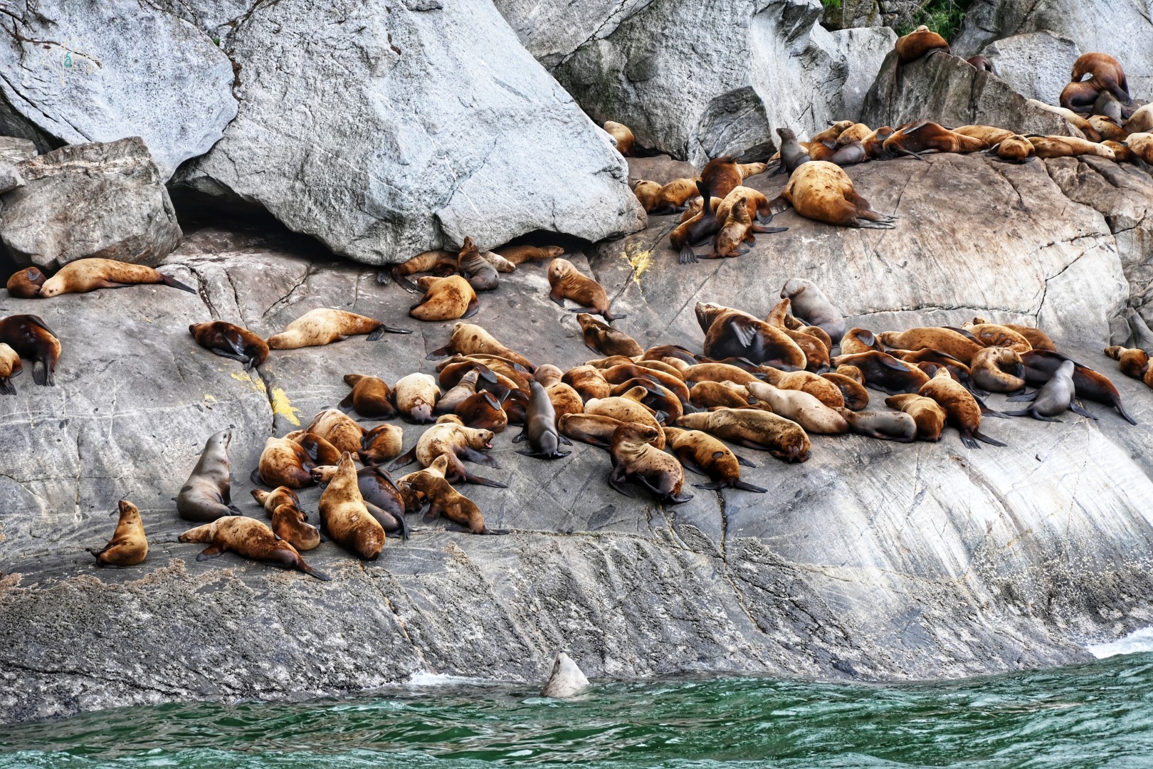 Leider hatten wir auf der Bootsfahrt dorthin das typische Inside-Passagen Wetter: Bewölkt und regnerisch (wie an durchschnittlich 332 Tagen im Jahr). Man kann das Ganze vielleicht etwas mit einer Fjord-Tour in Norwegen vergleichen, nur dass die Berge/Felsen hier nicht ganz so steil aus dem Meer hervorragen. Wie man merkt… so wirklich empfehlen kann man das aus landschaftlichen Gründen nicht, aber zumindest haben wir neben Seelöwen und Weißkopfseeadlern, ein paar Buckelwale – und die ersten Orcas meinesLebens gesehen.