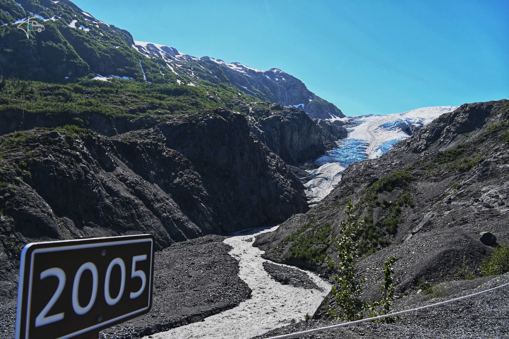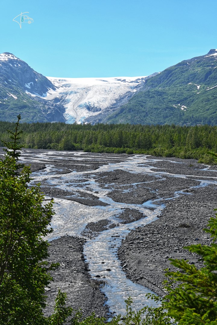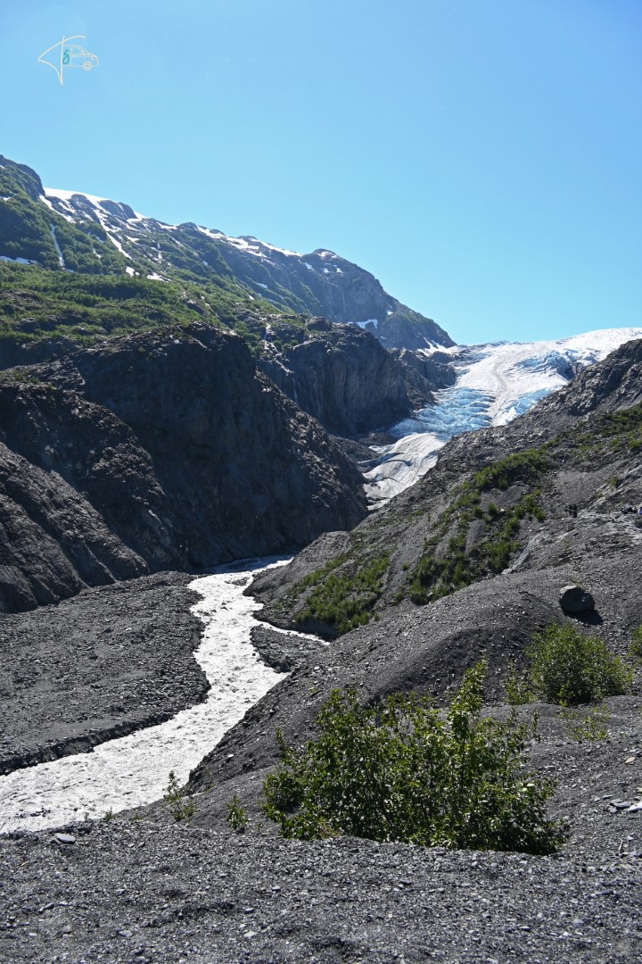 Leider war die einzige Sichtung ein Schwarzbär, der fast von einem Pick-up niedergemäht wurde und es nur um Haaresbreite geschafft hat. Wahnsinn wie selbst diese Bären klein wirken im Angesicht eines Pick-Up Kühlergrills (bin ich froh, dass es diese Autos nicht viel in Europa gibt!). Kenai ist auch bekannt für den Exit Glacier an den man direkt hinlaufen kann. Was soll ich sagen? Der Gletscher macht seinem Namen alle Ehre und „exitet“ im wahrsten Sinne des Wortes. Der Rückgang ist hier noch drastischer zu sehen als zuvor bei Juneau/Kennecott Glacier, denn es wurden Schilder aufgestellt, die zeigen wo der Gletscher in welchem Jahr stand. Heute sieht man ihn nur noch von der Ferne – vor 10 Jahren stand man direkt am Rand (da ich einen älteren gebrauchten Reiseführer bei Ebay Kleinanzeigen gekauft hatte, mit einem 10 Jahre alten Foto, hatte ich einen direkten „optischen“ Vergleich). Das war ein unglaublich bitterer Anblick und ich hatte ein ziemlich schlechtes Gewissen ob unserer Reise. Ich weiß, eigentlich sollte man das Fernreisen ganz sein lassen. Doch ich kann auch nicht aus meiner Haut, und (neben der Tatsache, dass mich Reisen so glücklich macht) macht es mich irgendwie auch zu einem achtsameren, umweltschonenderen Menschen, weil es mir zeigt was ich schützen will (rede ich mir zumindest ein…) aber doof und unangenehm ist sie schon, diese kognitive Dissonanz, vor allem im direkten Angesicht solcher Auswirkungen.