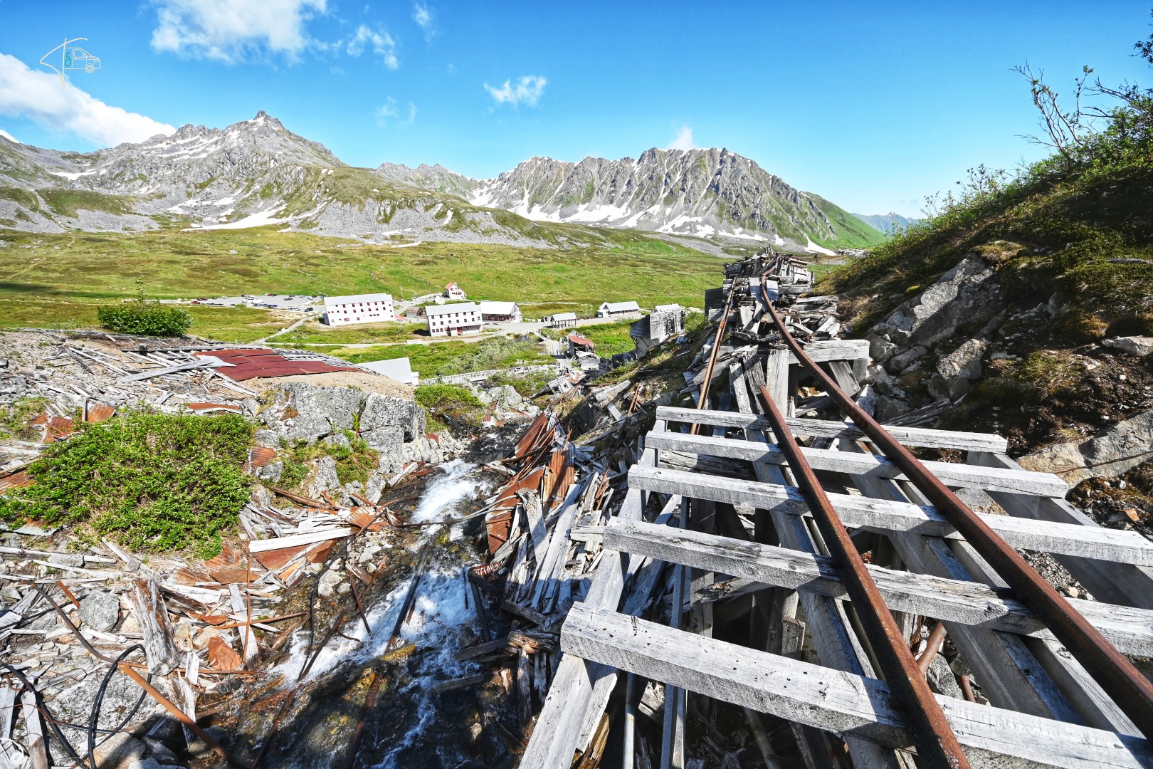 Von Kenai fuhren wir dann Richtung Denali Nationalpark – eines der Highlights Alaskas. In diesem Park gibt es fast eine Caribou-, Grizzly- und Elch-Garantie; die Tiersichtungen hier müssen fast schon legendär sein. Wir fuhren einen Umweg um die verlassene Independence Mine zu besuchen, die nicht nur extrem spannend und ein schönes Fotomotiv war, sondern uns auch eine wunderschöne Fahrt auf einer Nebenstrecke (größtenteils Schotter) einbrachte.