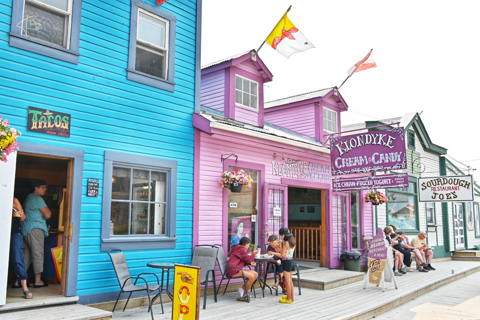 Dawson City war tatsächlich ganz süß gemacht; und ist vor allem für den Klondike Gold Rush in den 1890ern berühmt, als sich mehr als 100.000 Prospektoren in die unwirtliche Region des hohen Nordens aufmachten, in der Hoffnung bei der Suche nach Gold ihr Glück zu finden.