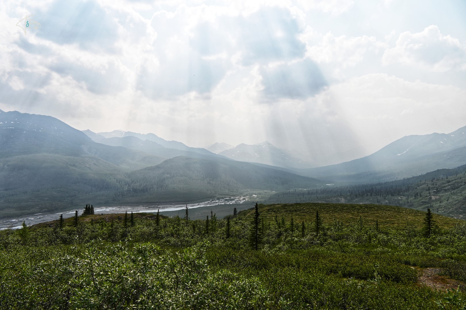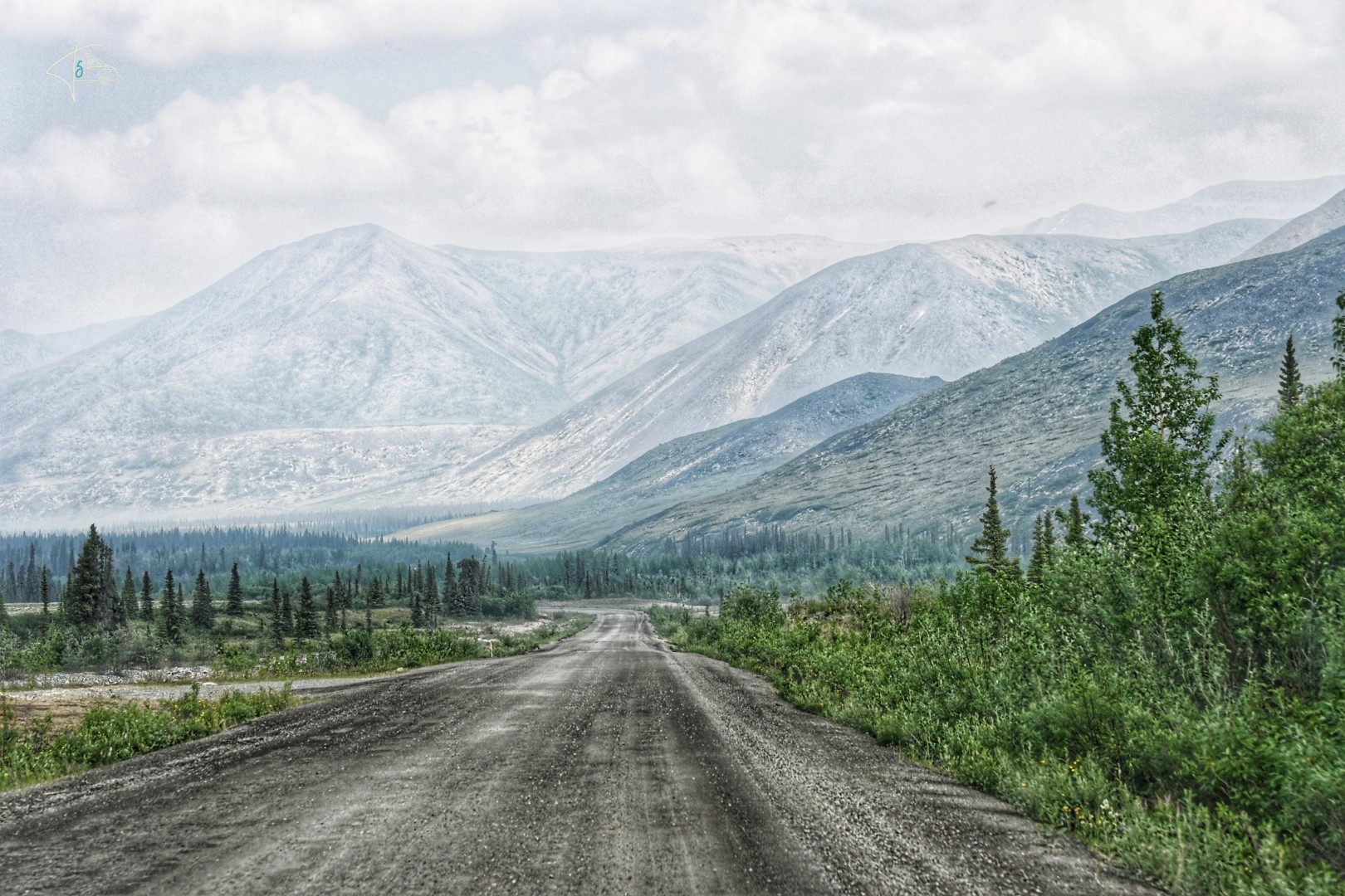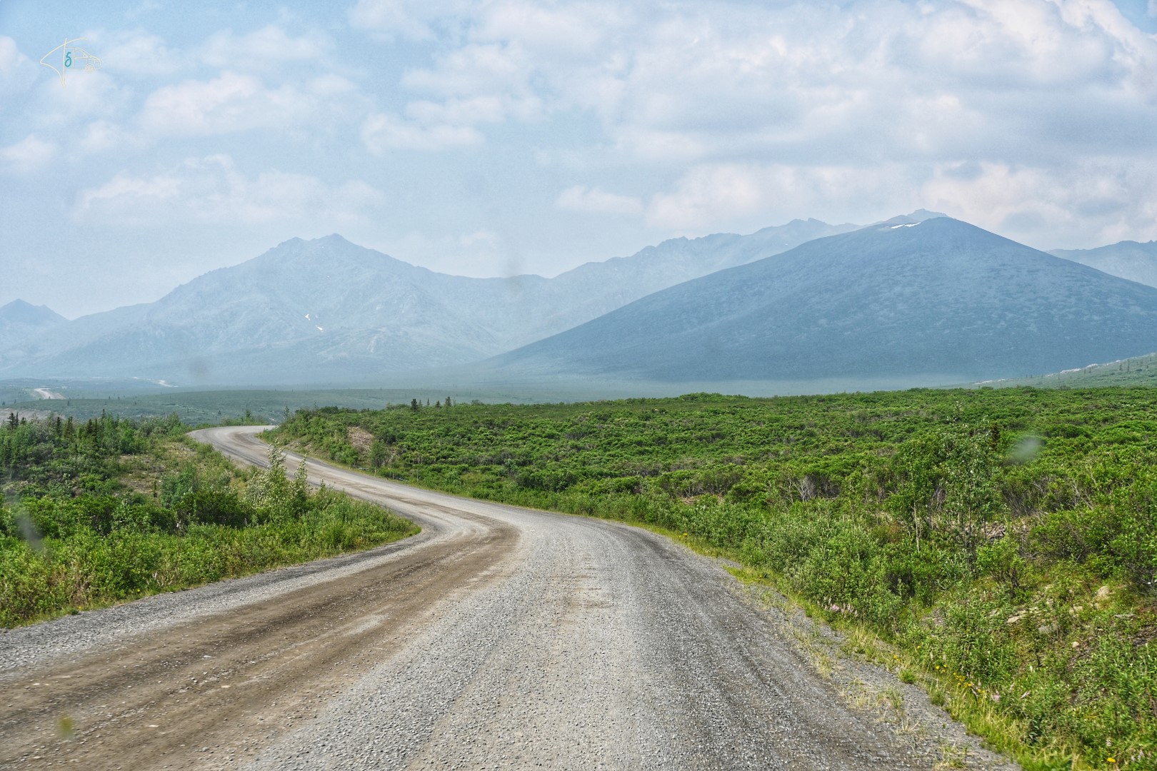 An dem Tag ging es noch bis kurz hinter den Tombstone Park – die ersten ~120km Schotterstraße Dempster Highway waren also geschafft. Leider hat uns der Rauch aus Alaska auch bis hierhin begleitet, so dass die Aussichten teilweise ähnlich getrübt waren, wie wir es vom Top of the World Highway am Tag davor kannten.