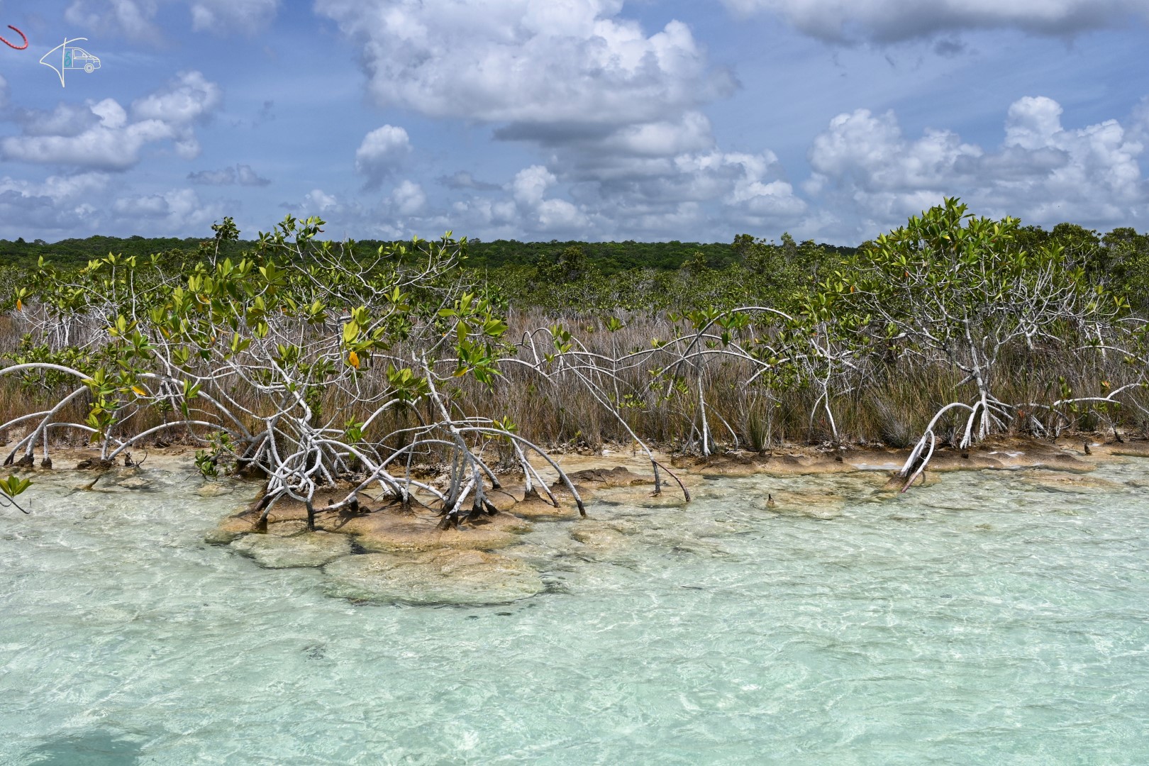 Nach wunderschönen Tagen in Puebla ging es „runter“. Über 2 Etappen verließen wir die klimatisch angenehme Hochebene, und fuhren ohne größere Besichtigungen auf die Halbinsel Yucatan. Die Landschaft veränderte sich von Kakteenfrüchten zu tropischen Früchten am Straßenrand. Wir waren nun im touristischeren (und sicheren) Teil angekommen. Dieses Mal suchten wir uns auf Yucatan aber ein Ziel etwas abseits der Haupttouristenroute aus – die Lagune der 7 Farben: Bacalar. Und es wird einem nicht zu viel versprochen. Das Farbenspiel der aneinandergereihten Zenoten die eine große Lagune bilden ist einmalig – und die Touri-Massen halten sich angenehm in Grenzen. Zeit für ein paar Posing-Bilder bei unserer Minikatamaranfahrt gab es auch. Wir ließen einfach die Seele (und die Füße auf den Schaukeln in unserer Unterkunft an der Lagune) baumeln. Ein schönes Ende für Mexiko.