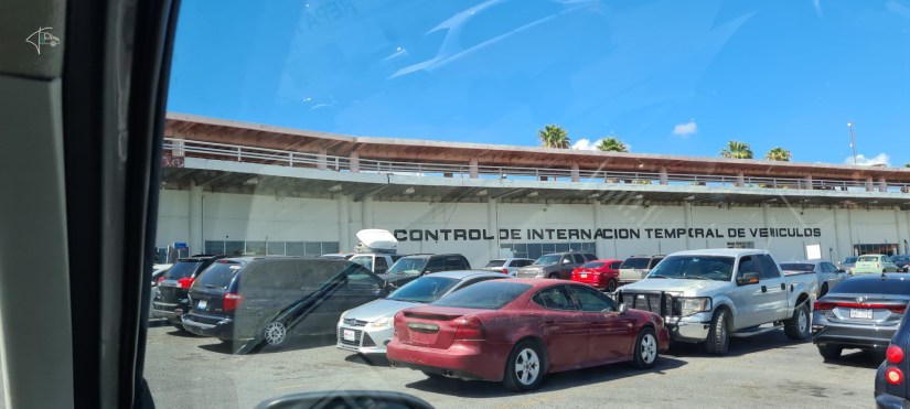 Die Einreise war insofern interessant, da man nach Mexiko einreisen kann ohne Grenzstempel oder irgendetwas. Man passiert nur eine Zollkontrolle und ist 10m weiter mitten in der mexikanischen Grenzstadt, ohne dass irgendwer Pass oder Autoimport gecheckt hätte – sehr seltsam. Um wirklich legal in Mexiko zu sein, muss man 3km durch das Städtchen zu einem Gebäude kurven, wo Migration und Banjercito beheimatet sind. Hätten wir uns nicht vorher informiert, wären wir also fröhlich illegal nach Mexiko eingereist, uns hätte keiner aufgehalten und wir hätten es erst bei der Ausreise festgestellt, wenn Stempel und Import-Permit fehlen. Einen Grenzübergang dieser Art hatten wir auch noch nicht. 🤨 Wegen Covid durfte nur der Eigentümer des Autos in die Räume; also musste Stefan (ohne Spanischkenntnisse) alleine ran. Es hat trotzdem alles geklappt, auch wenn die Mitarbeitenden komplett überfordert waren; sowohl mit dem deutschen Kennzeichen als auch deutschen, und selbst internationalen Fahrzeugschein. Trotz allem ging es schneller als gedacht, in einer Stunde war das gesamte Prozedere durch. Was unsere Touristenkarte anging, erhielten wir problemlos die 90 Tage Aufenthaltsdauer (auch hier gab es in der Coronazeit wohl ab und zu Schwierigkeiten). Doch die Beamtinnen bei der Banjercito wollten doch tatsächlich dass wir den Kreditkarten-PIN auf einen Zettel schreiben um das 400 US$ Pfand zu zahlen. 🙈 Als wir uns weigerten das zu tun, wurde Stefan vom Sicherheitspersonal abgetastet und durfte dann durch eine Stahltür in den Sicherheitsbereich des Banjercito, um die PIN ins Gerät einzugeben. 🙊