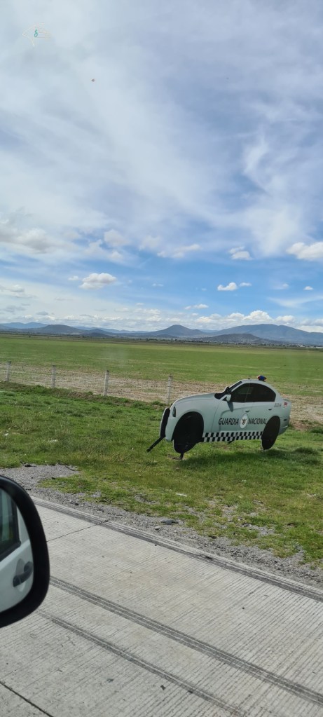 Zudem viel und extrem bewaffnete Sicherheitskräfte, Guarda Civil, Policia Nacional, Forca Civil und was Nicht alles… es ist einfach seltsam wenn vermummte Männer mit vollautomatischen Gewehren auf Autos stehend über die Autobahn fahren. Es fällt nicht schwer nachzuvollziehen warum uns Einheimische eindringlich gewarnt haben Kontakt mit Sicherheitskräften zu vermeiden (auch die Angst vor der Polizei der Frau in Monterrey war sehr real). Im Süden (jenseits von Mexiko City) gab es das nicht mehr, obwohl Abschreckungspappaufsteller überall präsent waren (dann doch eher mit lustigem Charakter).