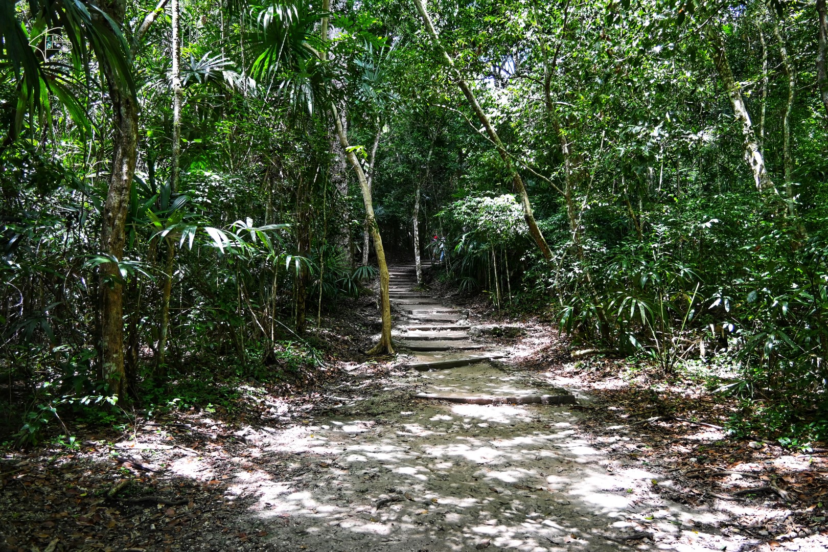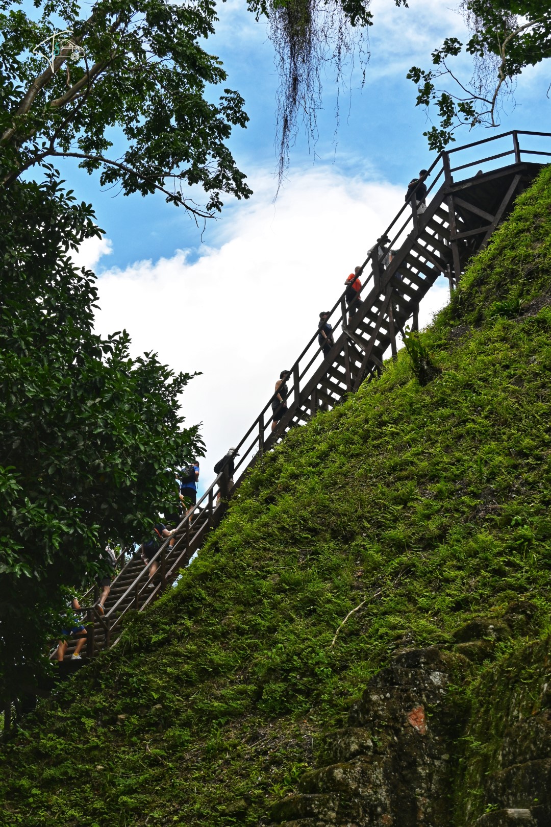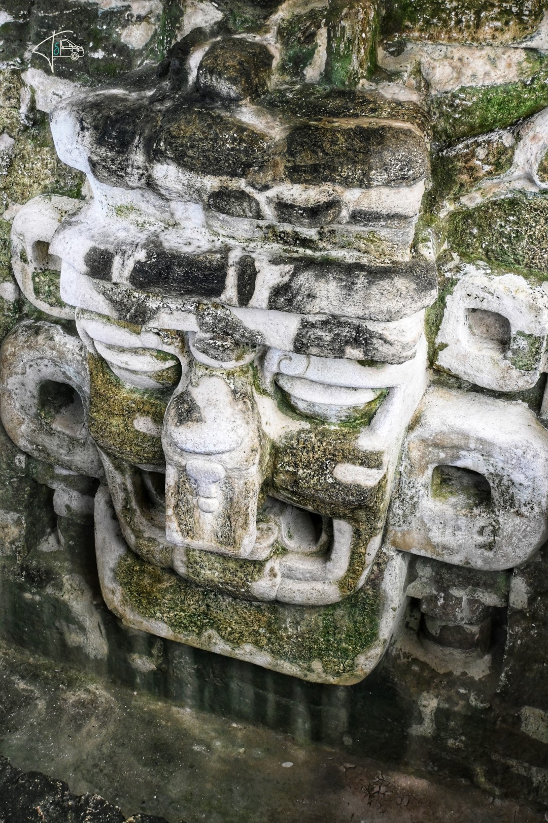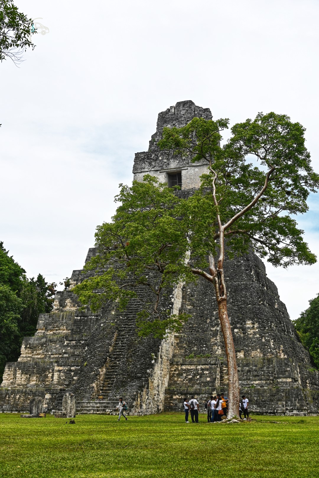 Am nächsten Tag ging es zu einer der legendärsten Mayastätten in Guatemala – Tikal. Die hohen Pyramiden im gleichnamigen Nationalpark sind eines der Highlights auf jeder Guatemala-Reise. Ursprünglich wollten wir es geführt machen, da es immer wieder Geschichten gab von Überfälle auf Tourist:innen im Nationalpark, da dieser sehr weitläufig und teils abgeschieden ist. Bei den horrenden Preisen entschieden wir uns dann aber doch dagegen, auch weil wir damit rechneten, dass ziemlich viel los sein würde. Warum? Es war Sonntag – und an diesem Tag haben alle Guatemaltek:innen freien Eintritt in Nationalparks, historische Denkmäler etc. Daher hieß es, auf nach Tikal. Die Fahrt dauerte ca. 1,5h (obwohl die Distanz nicht weit ist) denn einmal sind die Straßen nicht gerade die Besten, und um im Nationalpark die Fauna zu schützen wird die Geschwindigkeit überprüft und man darf nicht schneller als 45km/h fahren. Wie die Guatemaltek:innen das überprüfen? Sehr clever und kostengünstig wie wir fanden: Am Eingang des Parks steht jemand und schreibt penibel genau die Uhrzeit der Einfahrt auf dein Ticket und am Parkplatz zur Mayastätte wird das Ticket mit Uhrzeit kontrolliert und ausgerechnet wie schnell man gefahren ist. Tikal selbst war eine Wucht, die Pyramiden im Dschungel die unzähligen Nasenbären die über das Gelände streifen, und vor allem die fantastische Aussicht von den Pyramiden. Im Vergleich zu anderen Mayastätten sind hier Holztreppen aufgebaut um die Pyramiden zu schützen vor den Menschenmassen die hier hoch“trampeln“. Eine gute Idee, wenn man bedenkt wie viele Menschen hier jeden Tag rauf und runter laufen. Spannend ist auch, wie viel in Tikal noch nicht ausgegraben ist, und Schilder zu sehen (von Bodenradaraufnahmen) die einem Simulationen zeigen, wie es unter den „unscheinbaren“ Erdhügeln wohl aussehen muss. Wie viele dieser versunkenen Ruinen noch im Dschungel Zentralamerikas schlummern ist schwer zu sagen. Eine schöne Vorstellung und spannend zugleich, denn man sieht es einfach nicht. Für das ungeübte Auge (also unseres) ist es einfach nur ein Hügel.