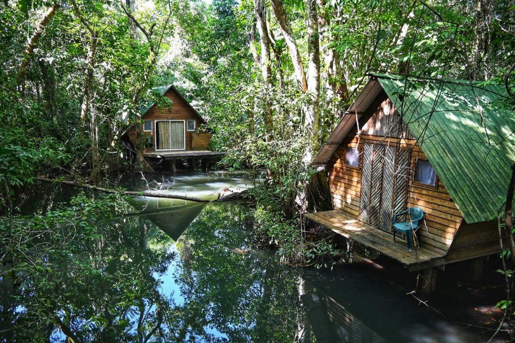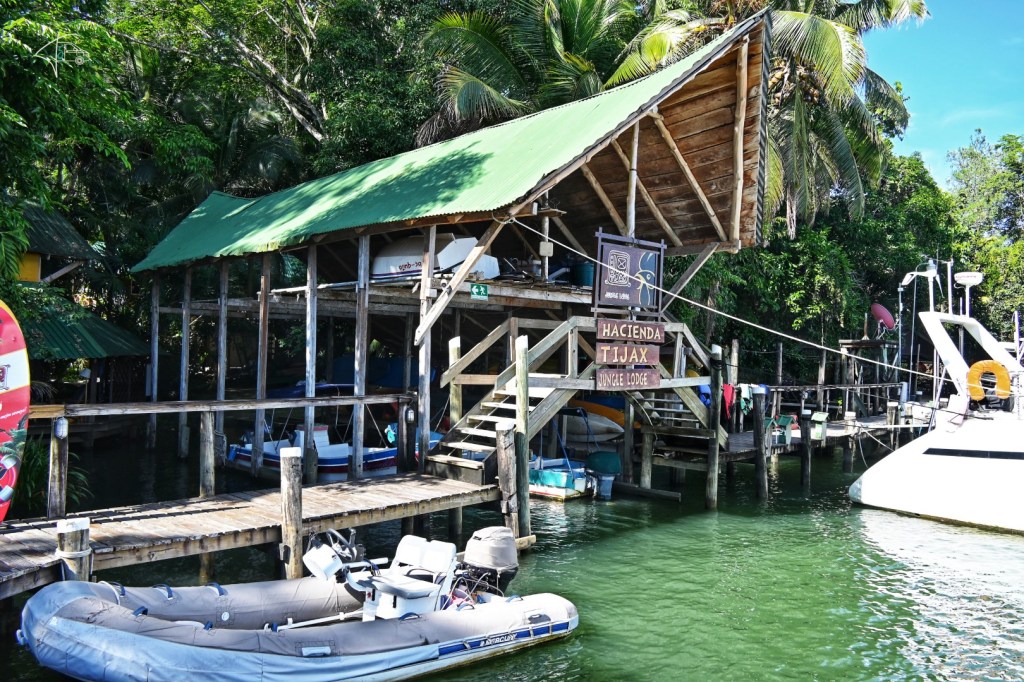 Nach unserer Tikal-Tour ging es weiter nach Rio Dulce. Ein Ort am gleichnamigen Fluss, der als Knotenpunkt große Bedeutung hat, aber auch wegen seines Dschungels im Hinterland; und als Abstellhafen für Yachten. Rio Dulce ist nämlich über den Fluss von der Karibik aus anfahrbar und gilt somit als der sicherste Liegeplatz für Yachten während der Hurrikansaison in der Karibik. Und so kommt es, dass sich hier in den Häfen sehr viel englischsprachige gut-betuchtes Klientel auf seinen Booten tummelt. Für uns war Rio Dulce auch ein Zwischenstopp auf unserer Reise Richtung Copan Ruinas (Honduras). Wir nächtigten direkt im Dschungel in Hüten am Wasser mit angeschlossenem Baumwipfelpfad zum Aussichtspunkt über Rio Dulce. Im Wasser leben Krokodile (wir haben leider keine gesehen), aber es kommt echtes Dschungelfeeling (mit ein klein bisschen Luxus 😉) auf.