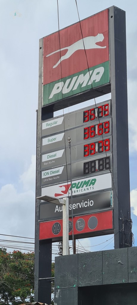 Eine kleine Geschichte am Rande – wir hatten in Kanada ja mal von dem Thema der schlechten Spritqualität ab Zentralamerika geschrieben. Nun ja, wir mussten in Flores ungefähr 5 Tankstellen abklappern; eindringliche Google-Recherche vorab sagte uns nämlich, dass es ULSD in Guatemala gibt (und es hier „ultra bajo de azufre“ heißt), allerdings konnten mit dem Begriff die meisten Tankwarte nichts anfangen. Nach endlosen Suchen fanden wir eine Tankstelle die es hatte (und auch endlich mal hinschrieb!). Wie wir später herausfanden, haben es auch noch mehr Ketten im Angebot, nur versteckt hinter irgendwelchen komischen Namen wie „Diesel Dynamax, ION Diesel“ etc. Das erinnerte mich doch auch etwas an mein Arbeitsleben und der häufige Wunsch den eigenen Produkten gerne irgendwelche „coolen“ Markennamen zu geben, möglichst kreativ und hip, und am Ende weiß keine Kund:in was dahintersteckt 🙊😆.