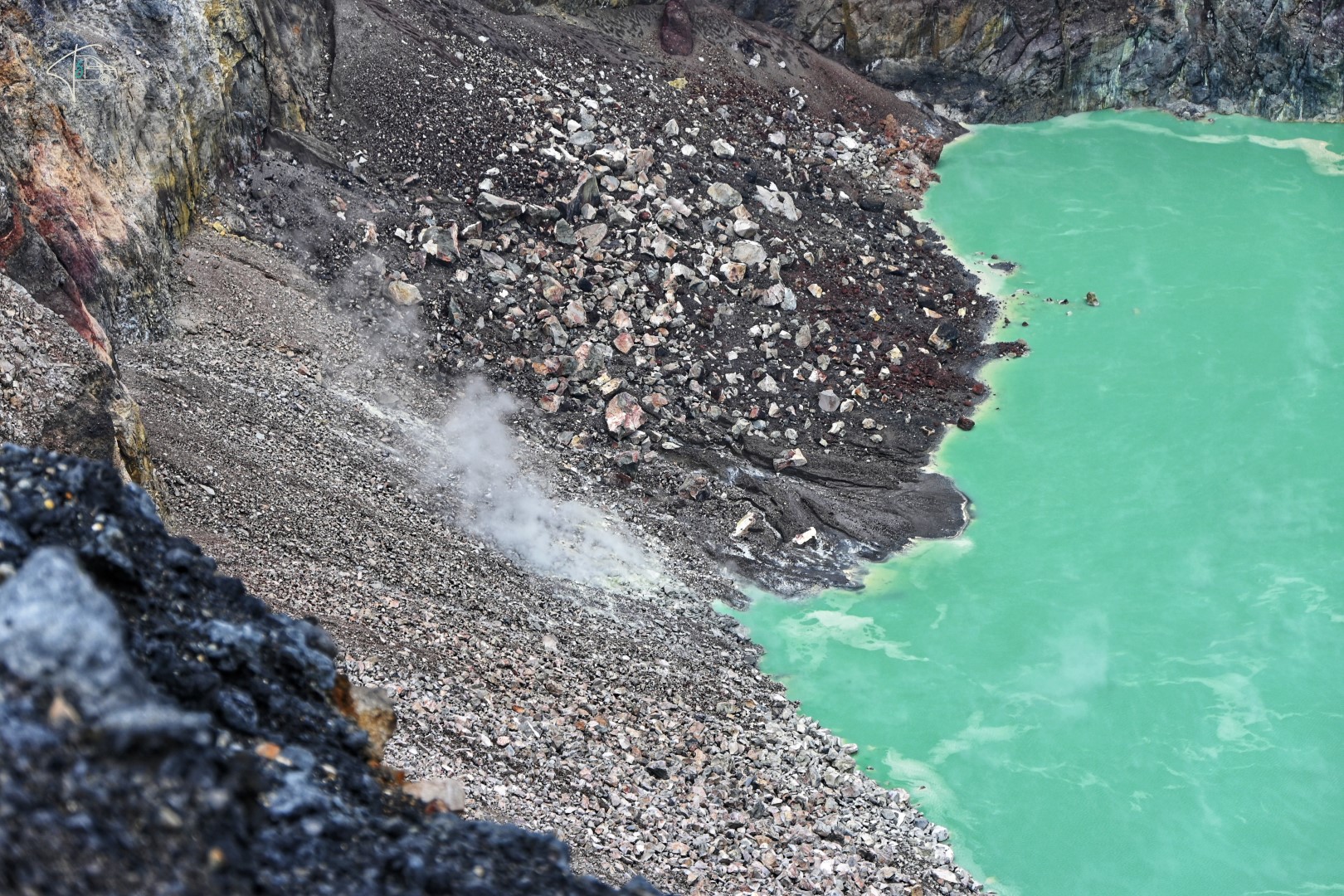 Entlang des Weges standen einige Polizisten. Auf Nachfrage erfuhren wir, dass diese jeden Tag auf den Vulkan laufen und warten, da hier früher häufig Tourist:innen überfallen wurden, und alles geklaut wurde (inklusive der Schuhe 🙈, damit man nicht so schnell wieder vom Vulkan herunterkommt). Wir bedankten uns alle bei Ihnen, die nett zurück lächelten – als wir später auf dem Krater oben waren, entdeckten wir einen der Polizisten beim Selfie-Machen. Der Vulkan scheint durch die Polizeipräsenz wohl deutlich sicherer geworden zu sein, wenn Zeit genug für ein Selfie ist – es war auf jeden Fall sehr lustig.😀 Alles in Allem fühlten wir uns sehr sicher, und hatten das Gefühl, dass sowohl am Weg, als auch oben am Kraterrand alle Guides, Polizisten etc. aufeinander und ihre „Grüppchen“ aufpassten (wir wurden sehr freundlich zu Vorsicht gewarnt auch von anderen Guides, als wir zu nah am Kraterrand standen). Als wir oben waren, war der Ausblick jedenfalls atemberaubend und den kleinen Aufstieg mehr als wert! Der Vulkan ist noch aktiv und wir rochen die Schwefeldämpfe und sahen das Wasser blubbern wo es über 140° heiß ist.