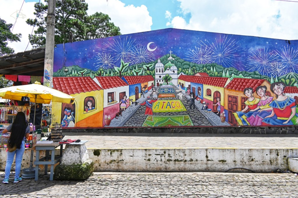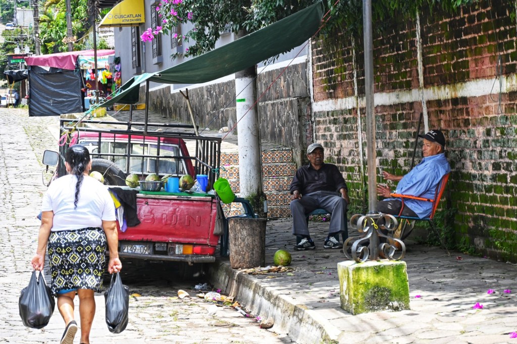 Wir waren auf dem Weg um die Ruta de las Flores abzufahren. Eine Straße welche verschiedene Dörfchen (Nahuizalco, Salcoatitán, Juayúa, Apaneca, Ataco, Ahuachapán) verbindet, von denen jedes eine andere Nische bedient (bzw. bedient hatte). Manche sind berühmt für Korbwaren, andere für Möbel. Mein Fazit ist, dass bedingt durch den Tourismus alle Läden in den kleinen Gemeinden das gleiche typische Touri-Repertoire im Angebot haben und heute von den Besonderheiten der Dörfer nur noch außerhalb der Innenstädte vielleicht spezielle Geschäfte zu finden sind. Trotzdem war der Besuch der Dörfchen ein sehr entspannter Trip, und da wir außerhalb des Wochenendes hier waren, konnten wir sehr viel des alltäglichen Lebens entdecken.