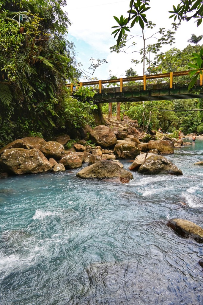 Am Ende der Bootsfahrt wollten wir unseren restlichen nicaraguanischen Cordoba (die wir leider in einer Hosentasche übersehen haben) an einen etwas älteren Mann am Anlegesteg verschenken, der selbstgemachte Schokolade verkauft hat. Er hat sich so gefreut dass er uns eine Packung selbstgemachte Schokolade geschenkt hat. Nachdem wir die probiert hatten war klar.. Wir kaufen gleich noch Zwei. 😉 Über einen Zwischenstopp am Rio Celeste (ein türkiser Fluss) und der Begegnung einer weiteren sehr posierlichen Echse ging es zu unserem Übernachtungsspot in La Fortuna.