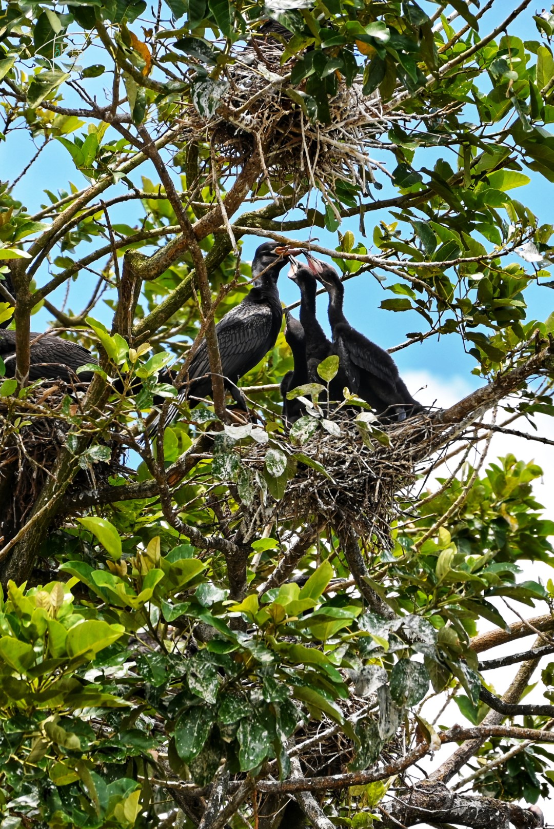 Die ersten 50km (noch auf der Panamericana) waren tiptop, und man hat an den Häusern der Straße entlang eindeutig gemerkt dass dieses Land deutlich reicher ist als die Vorherigen. Doch dann kam es dicke… die Straße abseits der Hauptroute zu unserem ersten Stopp nahe Caño Negro war so voller teils brutaler Schlaglöcher dass wir für 20 km knapp 3h gebraucht haben – alles Andere als ein Vergnügen und fast ein Schock, da wir nach hervorragenden Straßen in Nicaragua so etwas in Costa Rica nicht erwartet hätten. Am nächsten Tag haben wir einen Bootsfahrt durch das Caño Negro Gebiet gemacht. Caño Negro ist von der Pflanzen- und Tierwelt vergleichbar zum deutlich bekannteren, touristisch gnadenlos überlaufenen Tortuguero (nur ohne die brütenden Schildkröten, die aber zu der Zeit sowieso schon weg waren). Wir waren hier das einzige Boot, und nicht nur das; wir waren auch die einzigen Touristen und bekamen eine Privattour und konnten somit auch wirklich die Stille des Dschungels (bzw. die Laute des Dschungels) genießen, nach unzähligen Vogelarten, Reptilien und Amphibien Ausschau halten. Das wohl Coolste war eine schwimmende Schlange die ihre Kreise durch das Wasser zog. Aber auch die kleinen Fledermäuse die ihre Jungen wiegten waren lustig anzusehen (die Jungen hängen am Bauch und strecken die Flügel ab und zu raus).