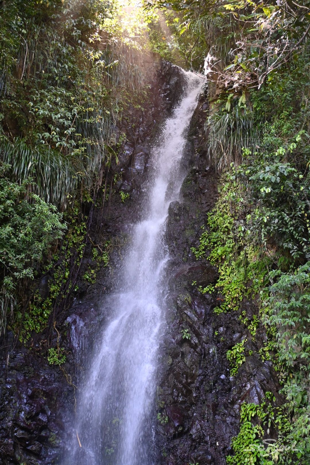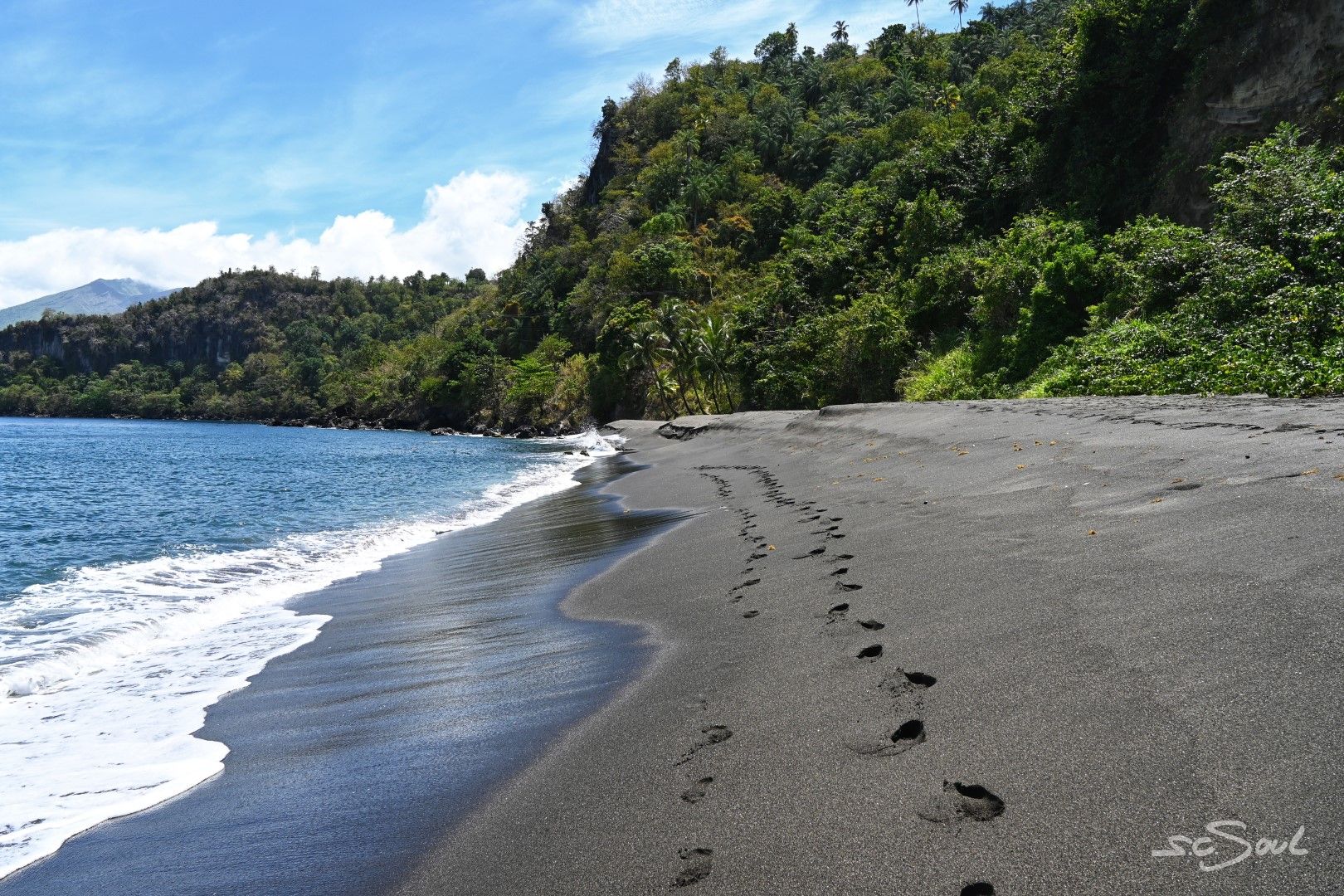 Über einen kurzen lohnenswerten Stopp zu den Dark View Falls die in 5 Minuten Fußweg gut ausgebaut zu erreichen sind, ging es dann zum Paradies Beach der seinem Namen alle Ehre macht. Der schwarze Vulkansand glitzert und dank der Tatsache, dass er sich glühend aufheizt, ist er faktisch menschenleer. Barfuss laufen kann man nur nah an der Brandung, wo das Meer regelmäßig den Sand herunterkühlt; überall sonst ist *autsch* Verbrennungsgefahr.